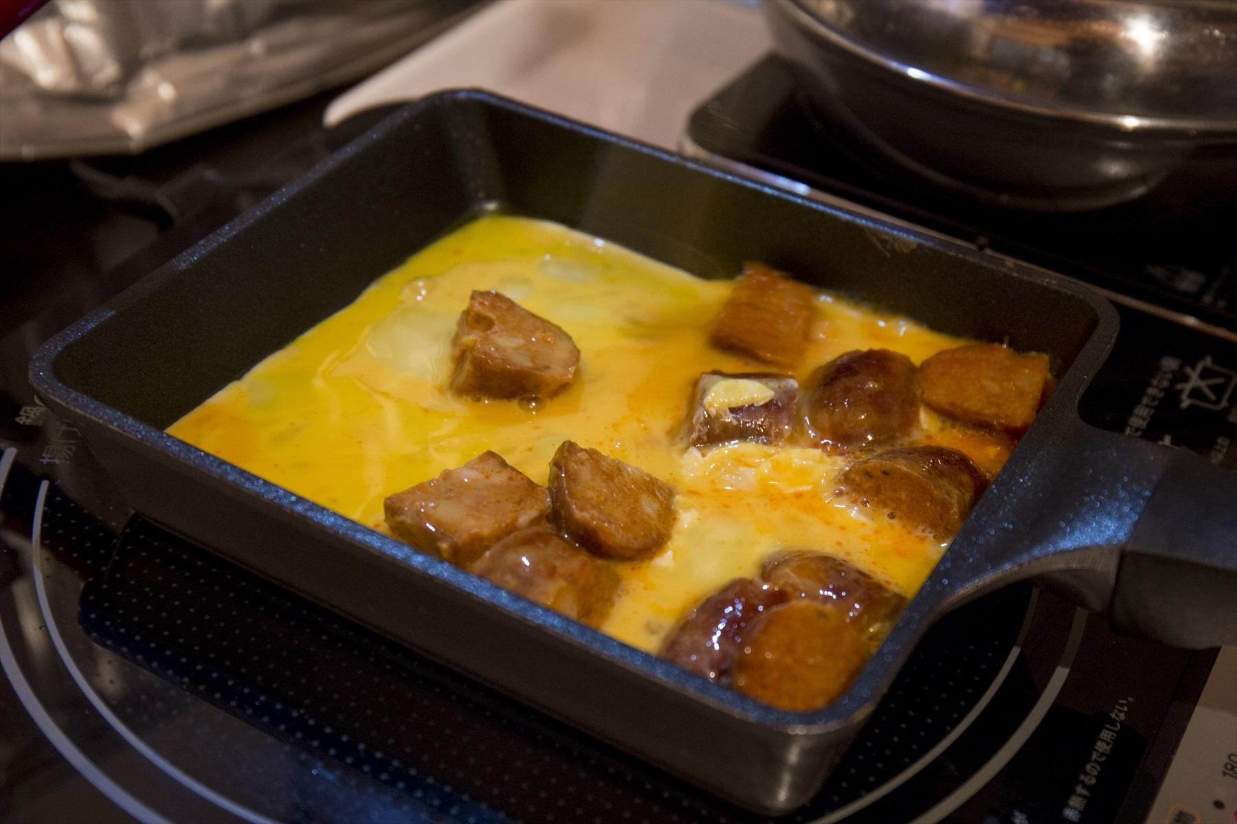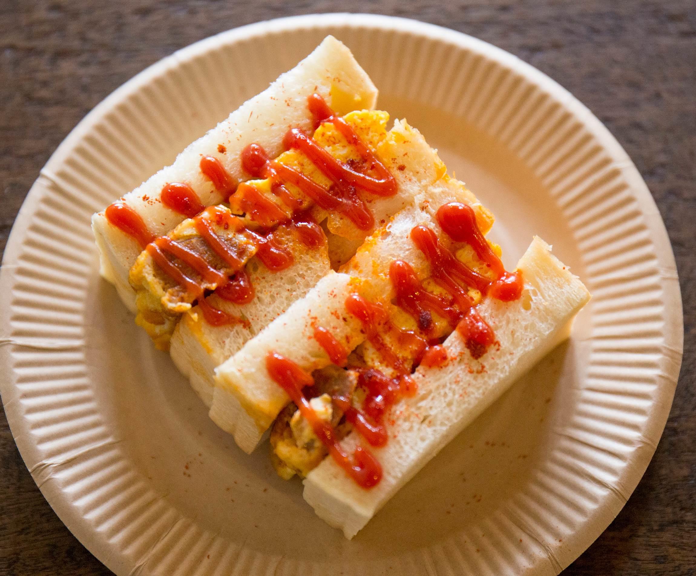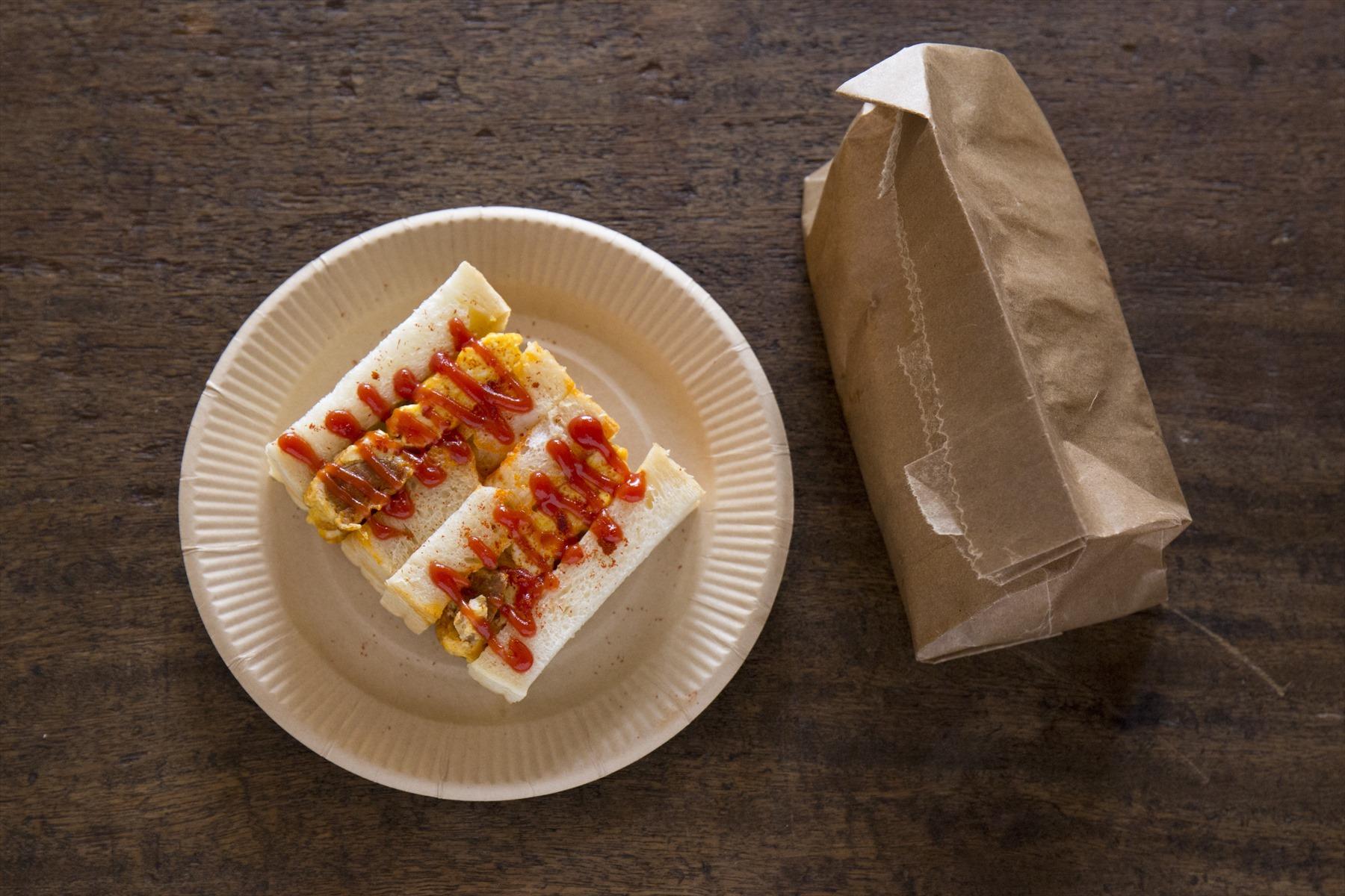 スペインのクラシックなレシピにのっとり、豚の腸に入れるのは豚肉のみ。そのチョリソーを玉子とともに炒め、食パンにサンドするのは、「誰もが手に取りやすい形とは?」を考え、たどり着いたひとつの答えだ。