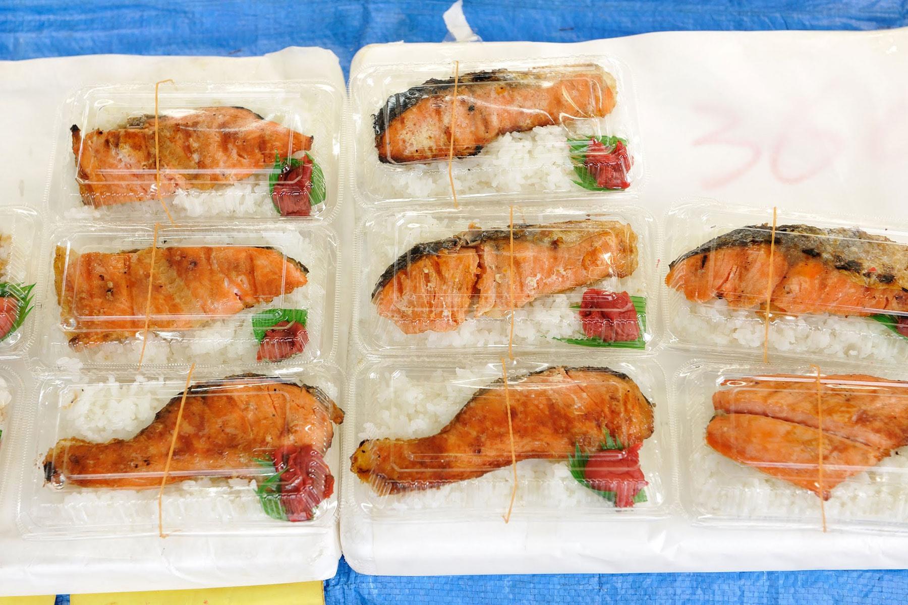 ちなみに、元子さんはバランスの取れた美味しさの真ん中あたりの身を好み、甫さんは脂ののったカマが好きなのだそう。店頭に並ぶパックを見つめ、各々好きな部位がのった鮭弁を選ぶのも楽しい。