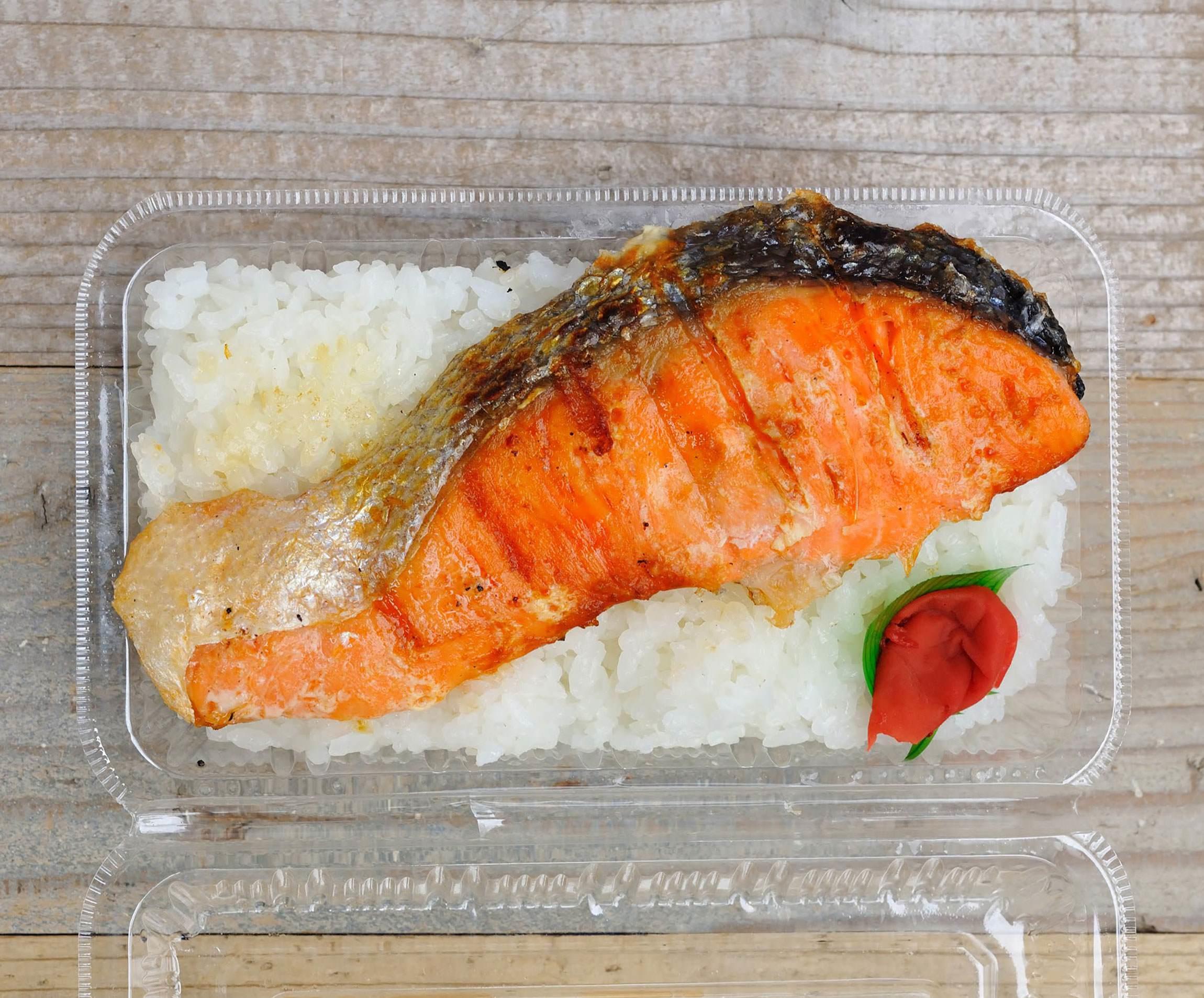 持ち帰り弁当、コンビニ旋風が勢いを増してきた頃。食材店に欠かせない計量器メーカーの営業担当から、「お宅も弁当を売ってみては?」と勧められたのがきっかけだった。しかし惣菜屋とはいえ、たくさんのおかずを詰めた弁当をつくるのは大変だし、売れ残って廃棄が出るのはもったいない。大手と同じような内容で、個人店が太刀打ちするのは難しい。ならば「弁当といえば塩鮭でしょ!」と、ご飯に鮭を載せただけの鮭弁を売り出すことにした。