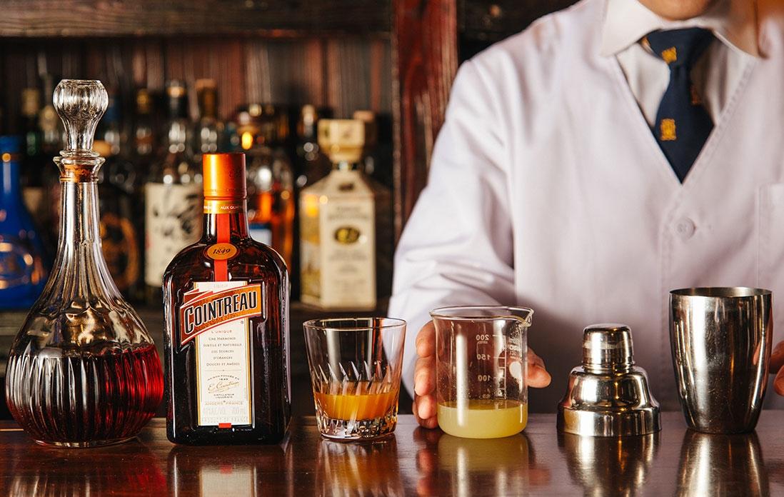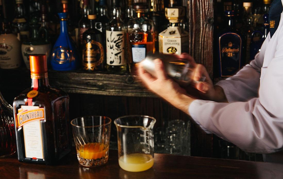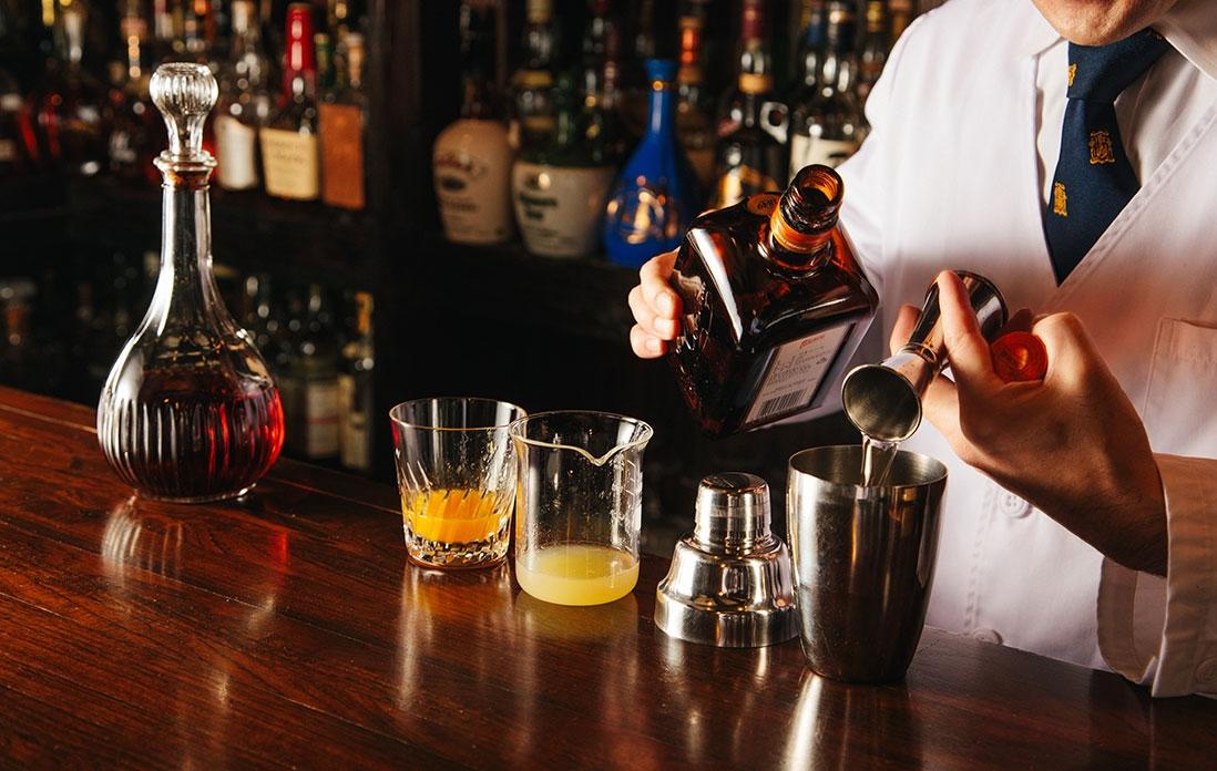 「熟成したブランデーを使うことで、味に深みは与えられます。でももっと柔らかい味わいにしたい。そこで合わせてみたのがオレンジジュースでした。コアントローというリキュールは、オレンジを使っています。そのオレンジの華やかな香りを補う役割として、フレッシュの果汁を合わせてみたのです。味が丸くなるでしょう?これは僕が店を開いた、46年前からのレシピですね」