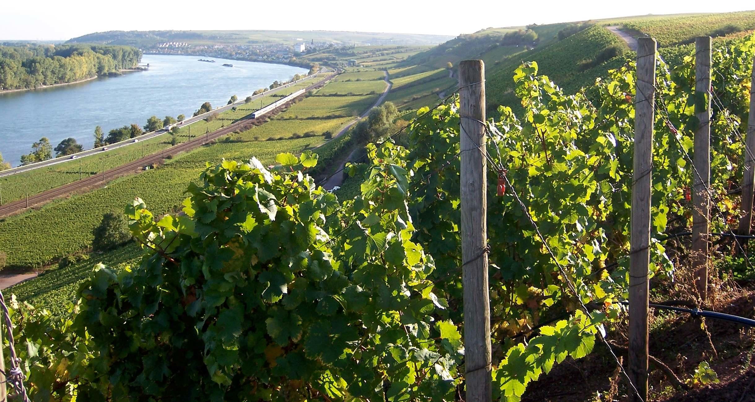 “父なる川”とドイツ人が愛着とともに呼ぶその川面に向かって斜めに落ちこむ畑は、歩くのすら困難なほど。