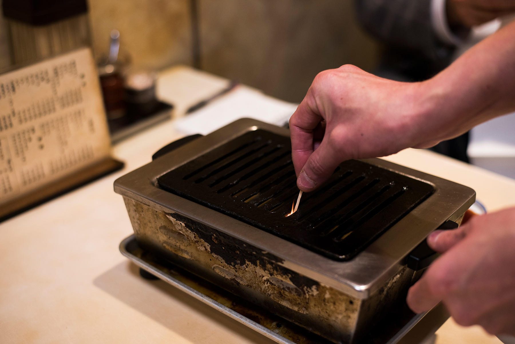 そして、昔ながらの煙モクモクの卓上ガスコンロ。無煙ロースターとはムエンだ。