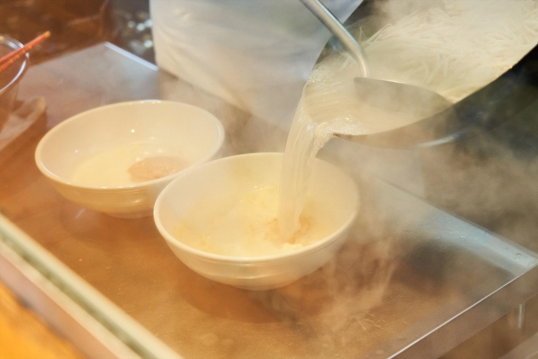 組み合わせの妙で生まれたメニューだということは、つくり方を見れば一目瞭然。丼に、北海道産の白味噌をベースにした特製味噌、カレー粉、そして牛乳を直接どばどばっと注ぐ大胆なスタイル。そこへ、炒めたもやしをスープで煮込んでから丼に注ぎ入れ、麺を入れれば完成だ。
