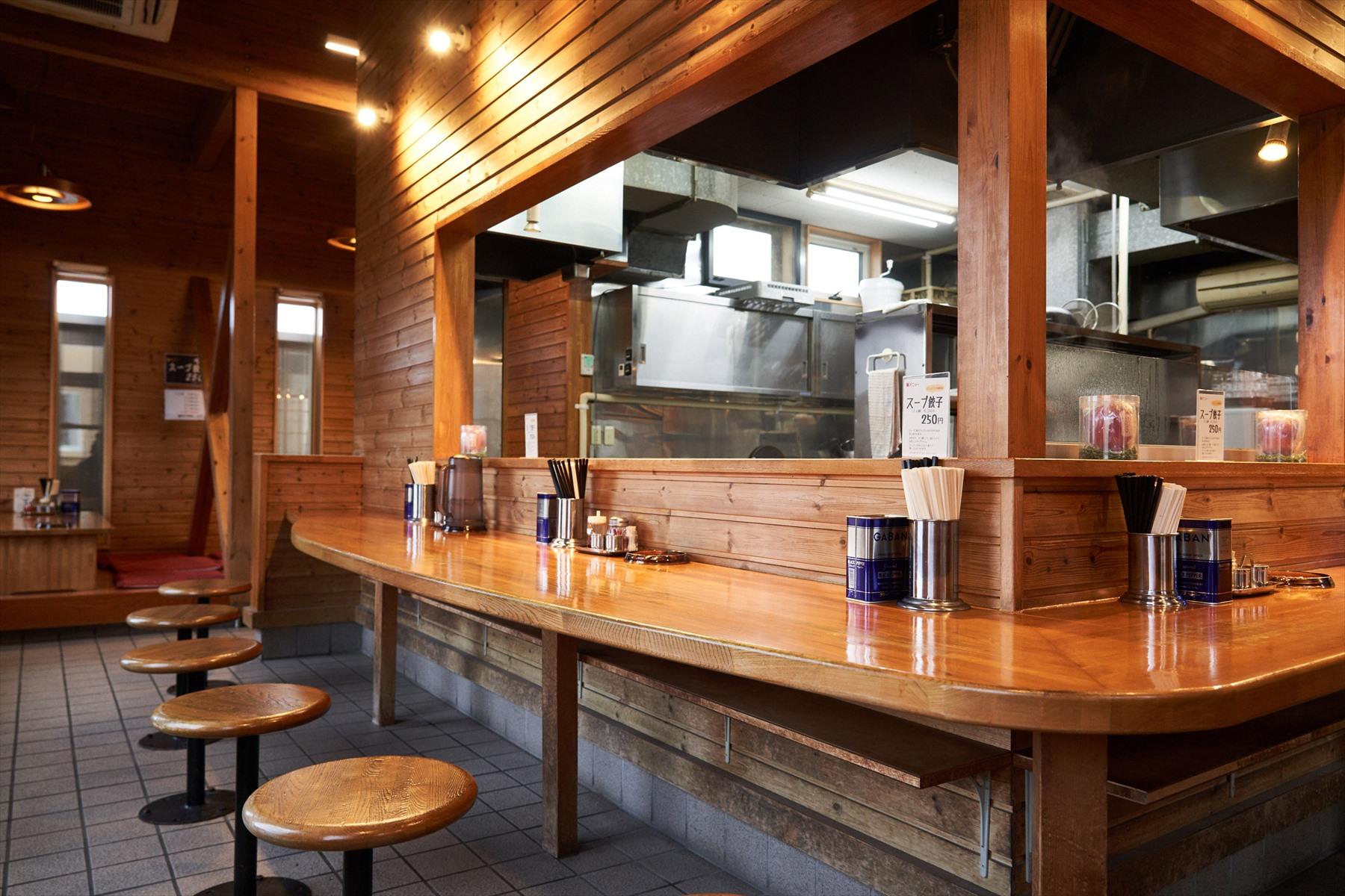 次に向かったのは、青森市街から車で15分ほどの場所にあるラーメン専門店「かわら」。ファミリー層にも人気があるという店はログハウス風の温かみある店内で、広々とした厨房はぴっかぴかだ。