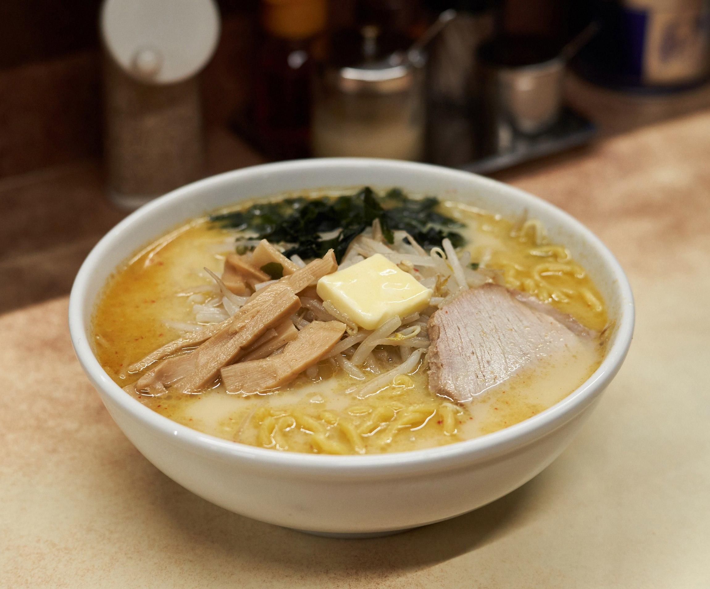 麺は、ルーツである札幌ラーメンと同じ中太のちぢれ麺。スープがしっかりと絡んで、モチモチとした歯ごたえが気持ちいい。味噌のコクが広がり、トッピングのバターが溶けてゆくごとにまろやかさが増して、スパイス効果で後味は爽やか。タイの、カレースパイスを使うココナッツミルク入りラーメン“カオソーイ”にどことなく通じるものがあって、ちょっぴりアジアンテイスト。これは、ハマる味わいだ。