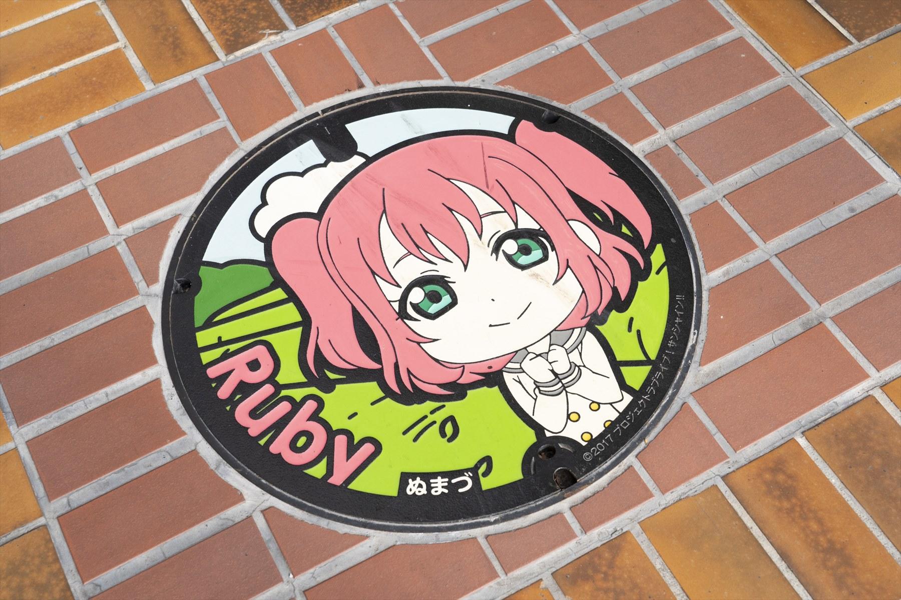 よく見ると、町はこのアニメのキャラだらけだった。ポスターにのぼりにマンホール。