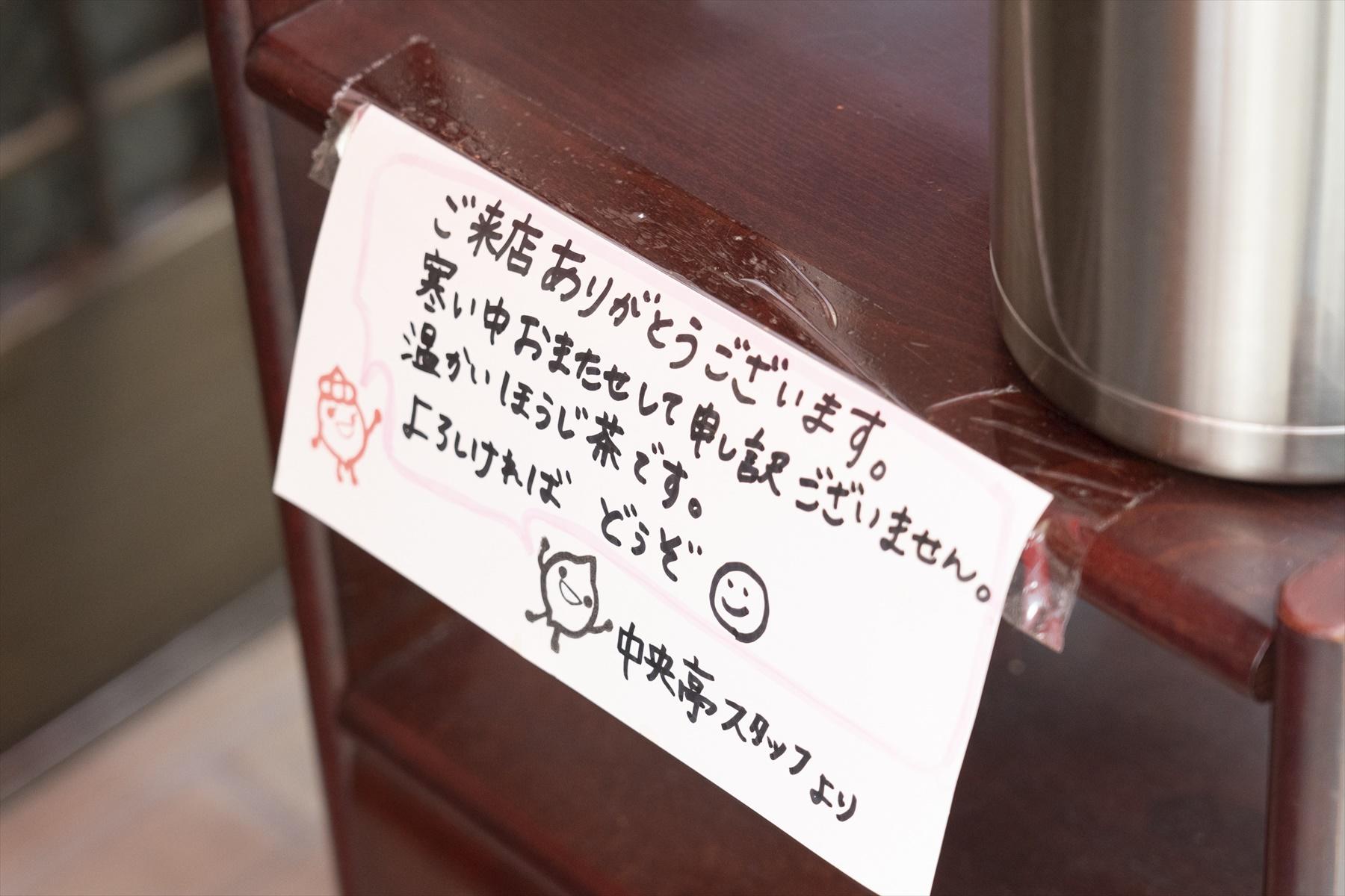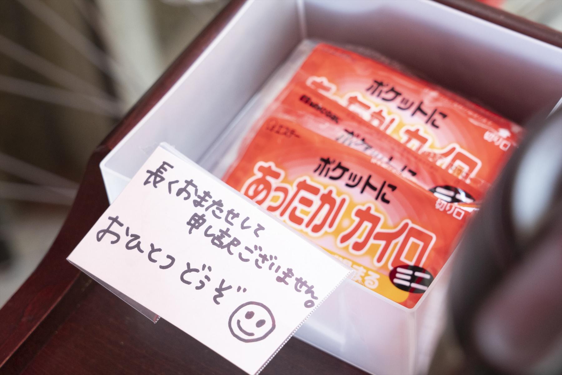 「すごいです。温かいほうじ茶と、なんと使い捨てカイロのサービスがありました!」