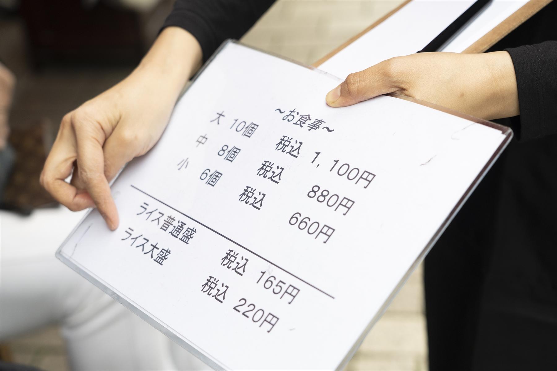説明してくれるといってもメニューは餃子とライスだけです。