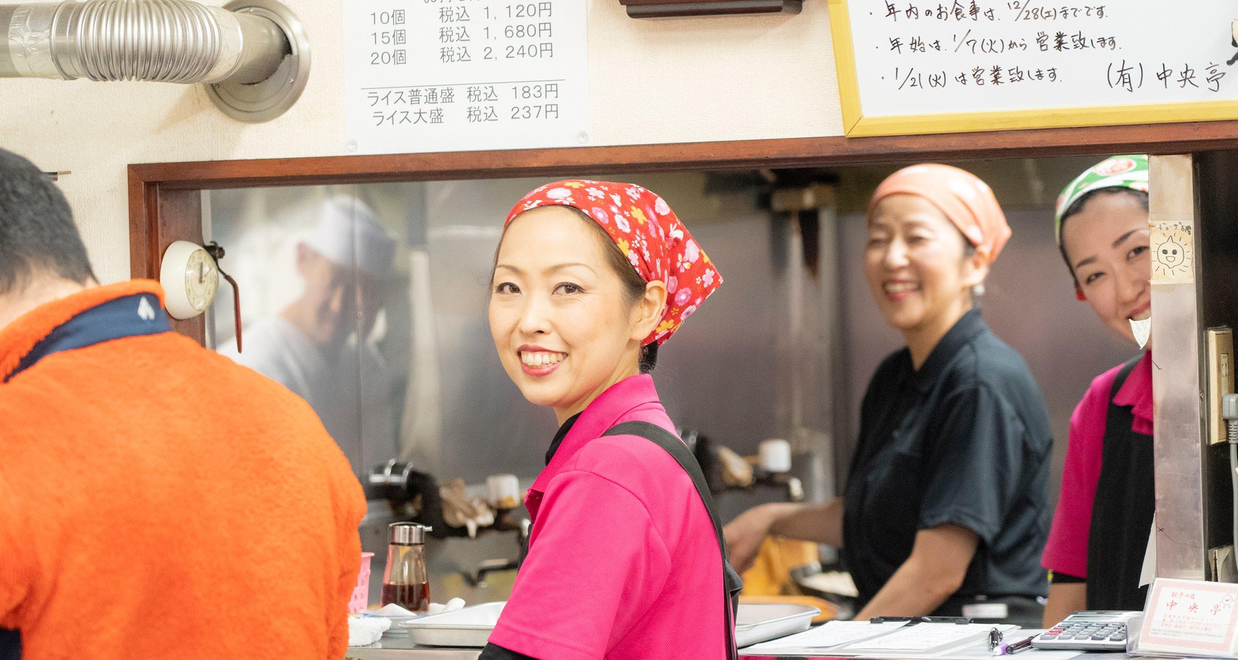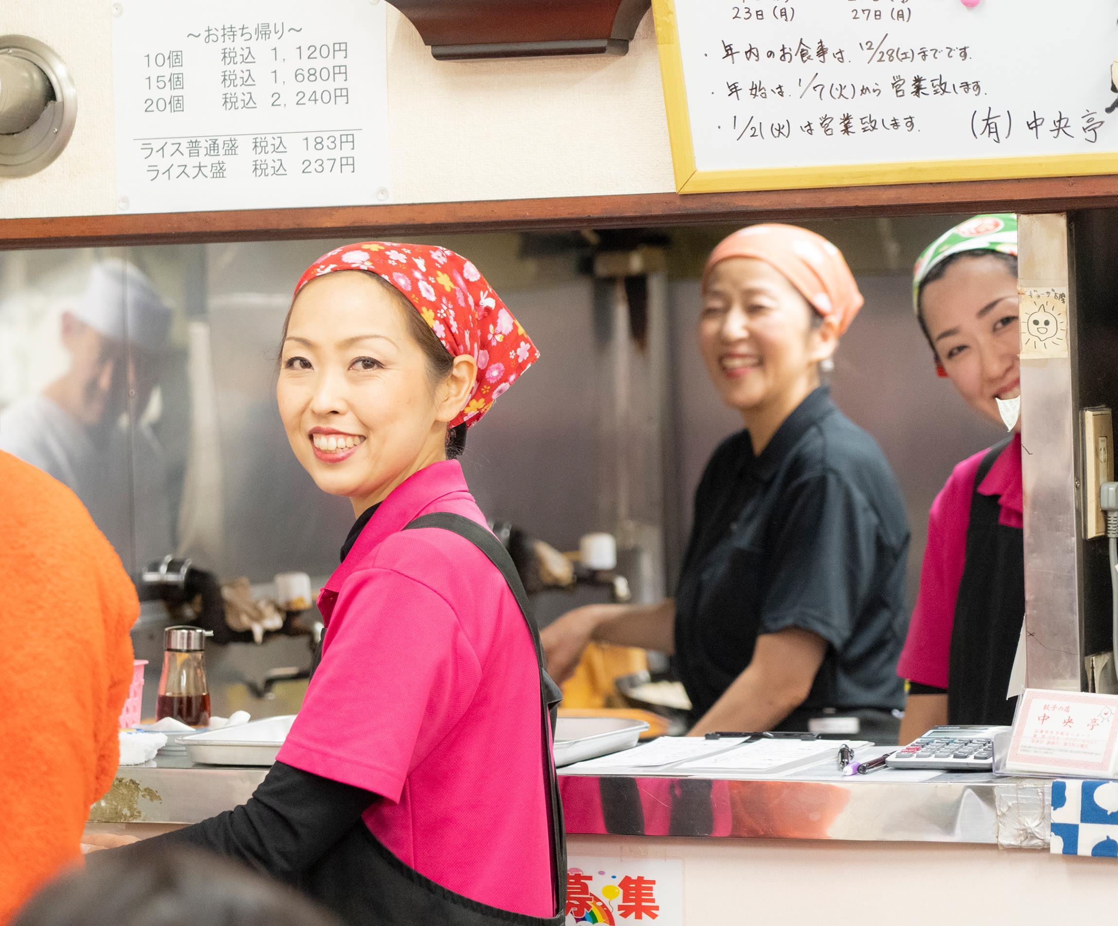 餃子を待ちながら店内を眺めていると、あることに気付いた。さっきアナウンスしていた女性が残像拳のように何人もいて、あちこちで動いているのだ。