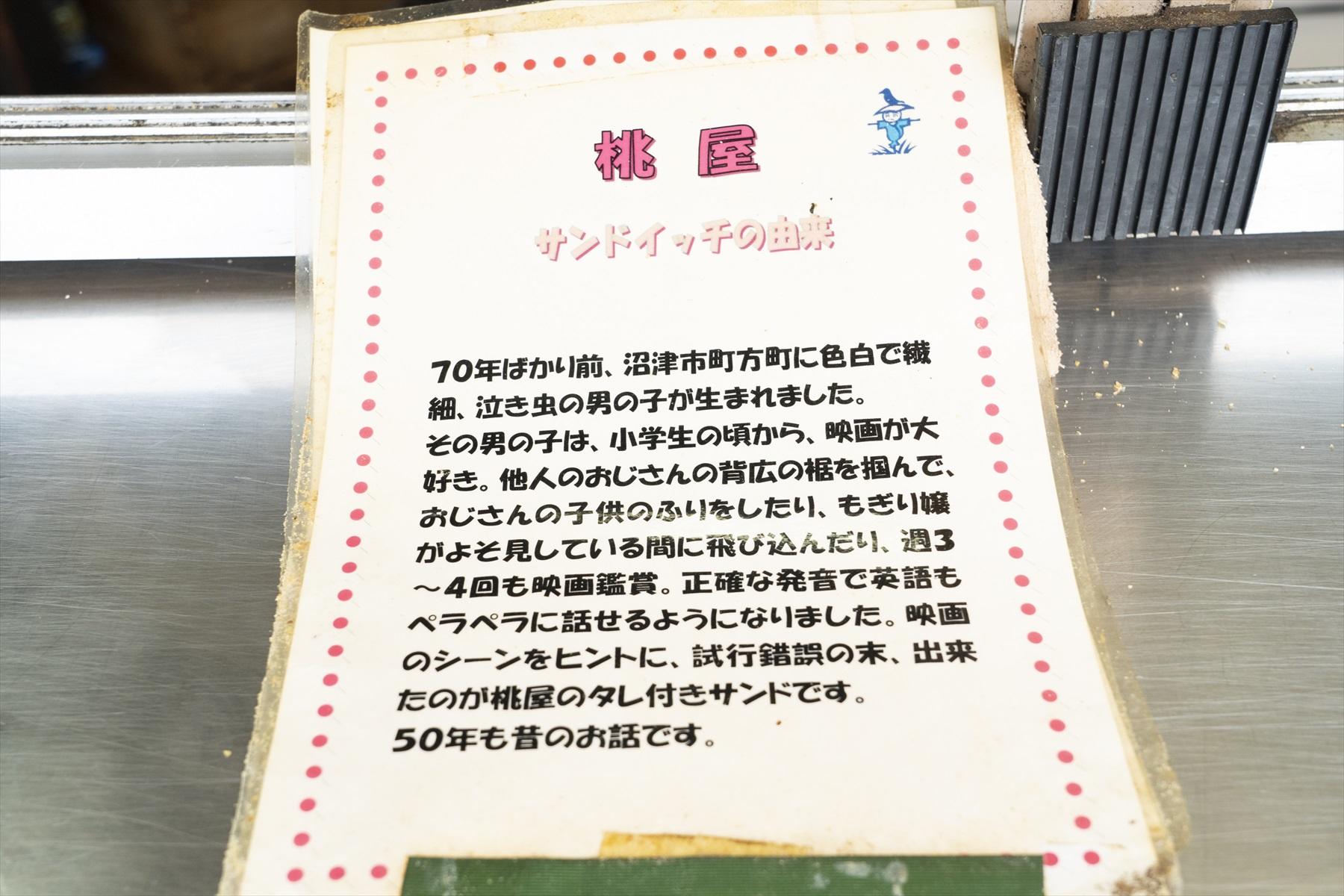 表題に「桃屋 サンドイッチの由来」とある。なになに?