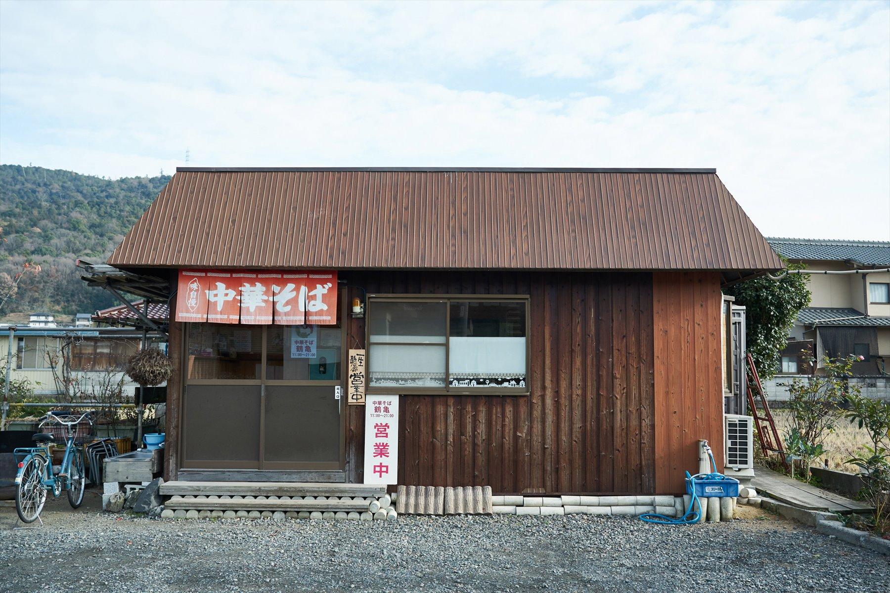 笠岡市の中心部から車で走ること15分。山へ山へと向かう道すがら、民家の敷地に「中華そば」の赤い暖簾がはためく小屋を発見した。