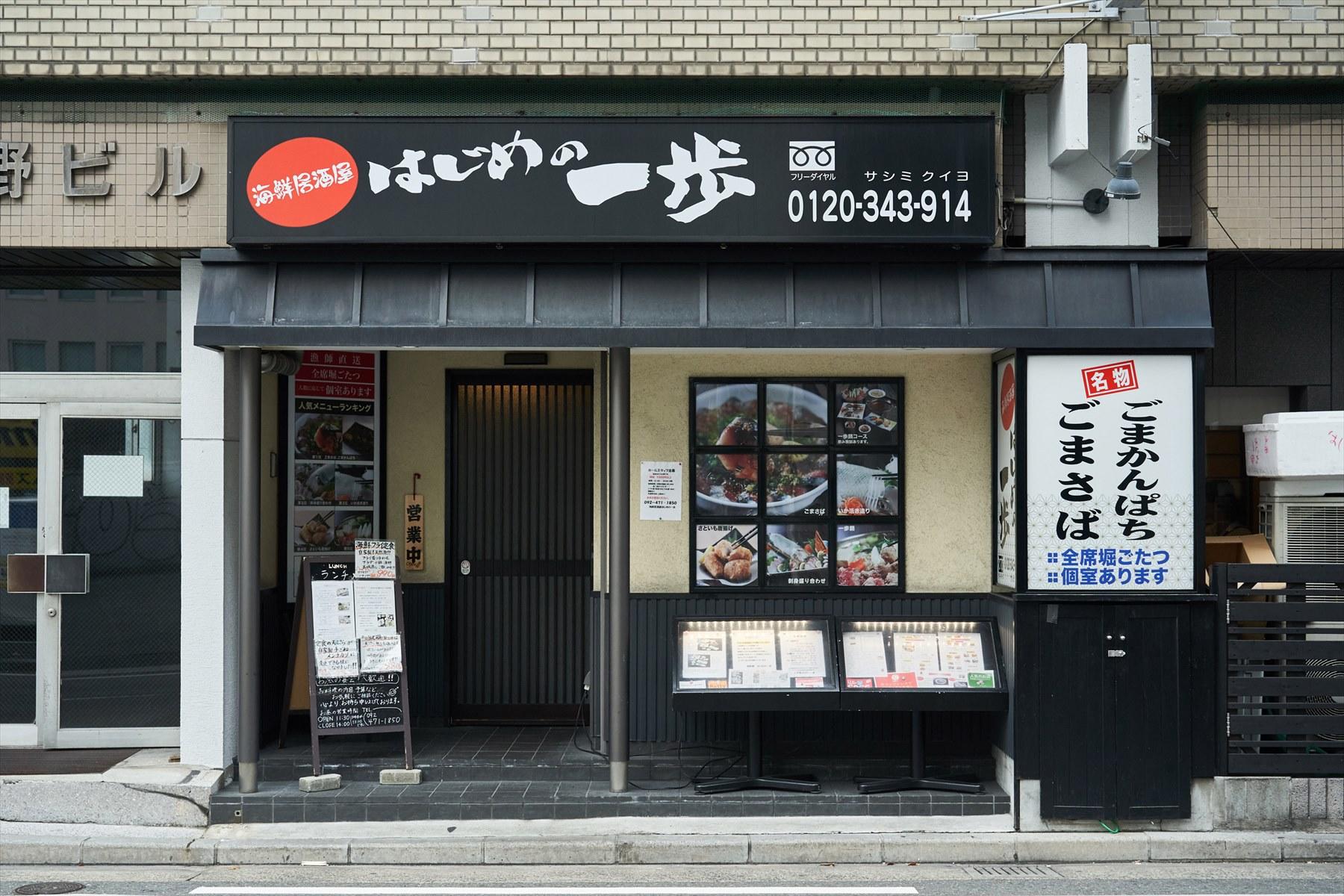 福岡空港から地下鉄に乗って2駅。博多駅からビルの立ち並ぶ繁華街を歩いて「海鮮屋 はじめの一歩」を目指した。舌の肥えた博多っ子に人気の海鮮居酒屋だ。