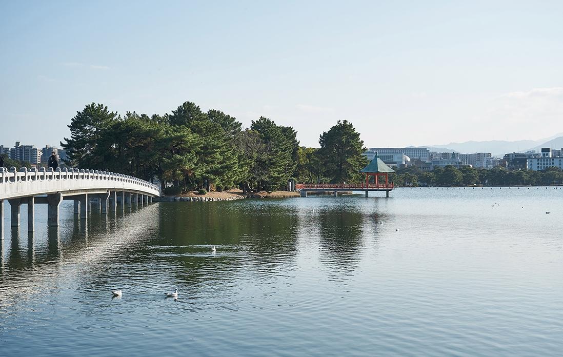 福岡の繁華街、博多は遊び方もいろいろ。都会ならではのショッピングを楽しんだり、中州の屋台街ではしご酒を楽しんだり。「福岡アジア美術館」でアートに触れるもよし、国内屈指の水景公園「大濠公園」でくつろぐもよし。福岡空港から直近の街だから、ギリギリまで遊びつくせる。それもまたこの街の大きな魅力だろう。
