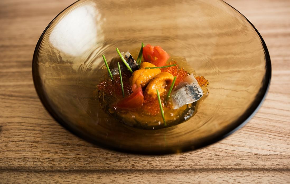 1軒目は「noura(ノウラ)」(2018年)。ミシュラン2つ星「Hommage(オマージュ)」(2000年)の姉妹店として「オマージュ“のうら”」に開店した。2020年3月からはランチ10,000円(税サ別)と高級店となっている「オマージュ」が創業当時に出していたようなメニューを格安で提供する店だ。穴場だったのだが、「ミシュラン・ビブグルマン」を獲得した(2019年版)ので、これからは……。