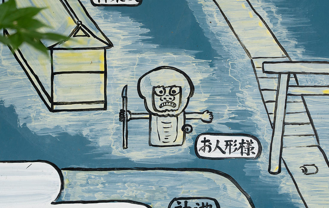 福島県田村市にはお人形様と呼ばれる巨大な人形が祀られている。芦沢地区の屋形、朴橋と堀越の明石神社内の3ヶ所でお人形様の姿を見ることができる(表情はすべて違っている)。どんな理由で祀られたのかは定かではなく、文化5(1808)年には存在していた記録が残っているという。毎年、春には衣替えが行われる。「たまのや」でたばこ煎餅を買い求め、葉たばこの畑を見た後は、お人形様めぐりも一興。