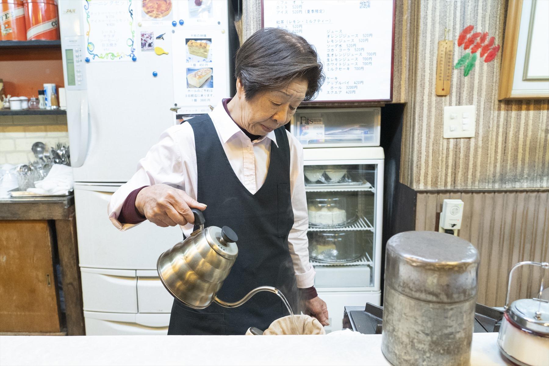 ネルドリップならではの厚みと軟らかさを感じるコーヒーを飲みながら、セピア色の店内に染みついた68年間の空気を吸う。旅の合間のリッチな休息。店名の由来はやはり苗字らしい。