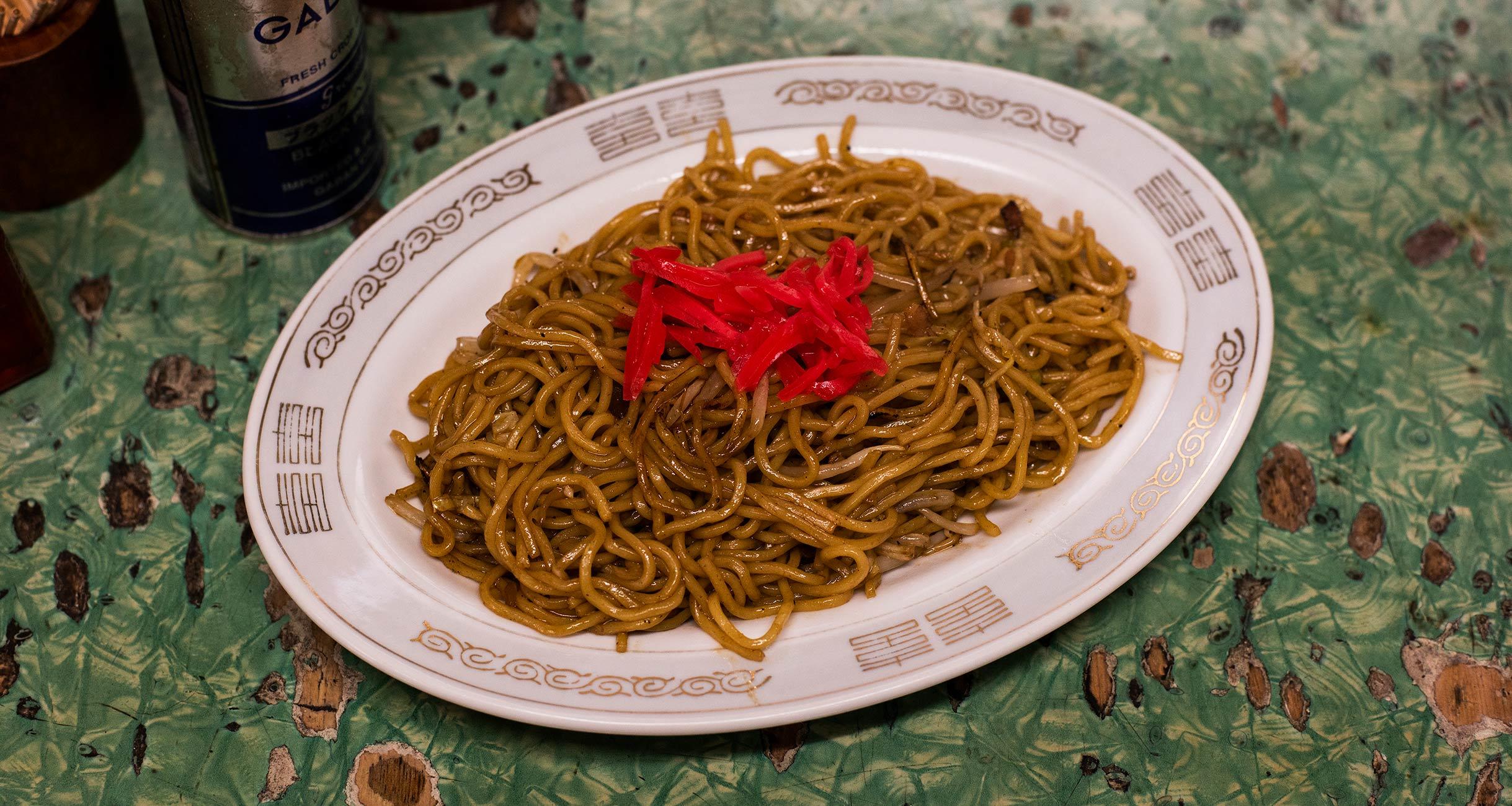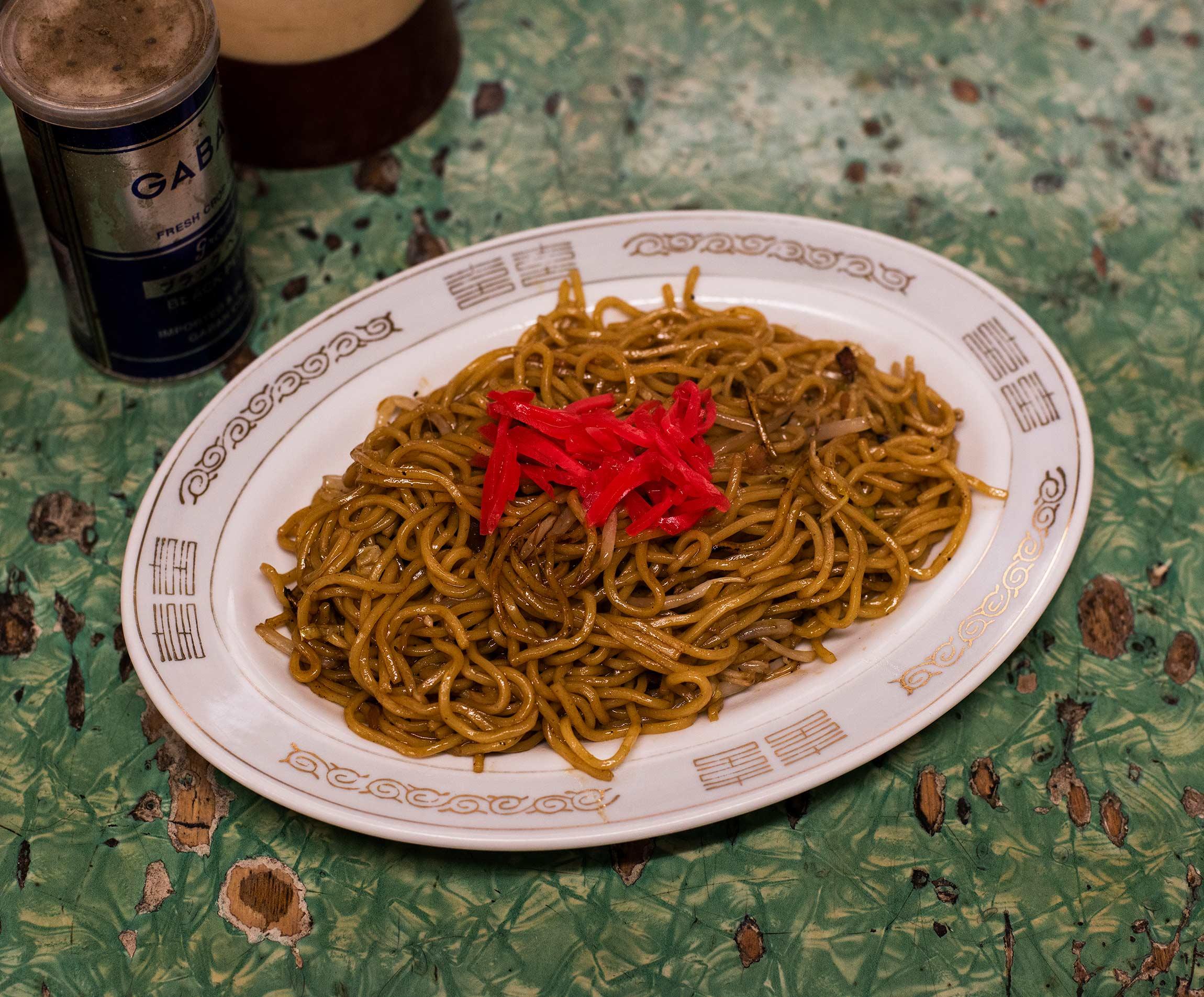 ――これは山谷「大林酒場」で受けたのと同じ衝撃だ。壁といい、床といい、机といい、テーブルといい、まるで映画『三丁目の夕日』のセットのよう。長く値上げせず変色している壁の短冊メニューも、中華そば・焼きそば・カレー各500円、ラムネ200円と、泣かせる品揃えだ。