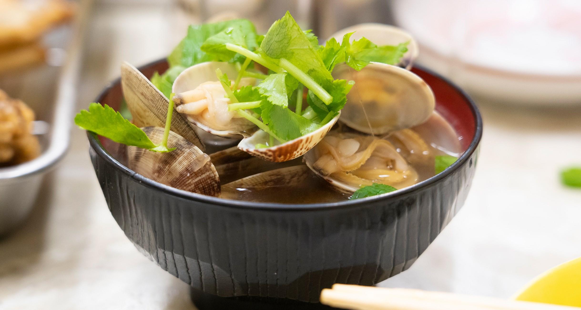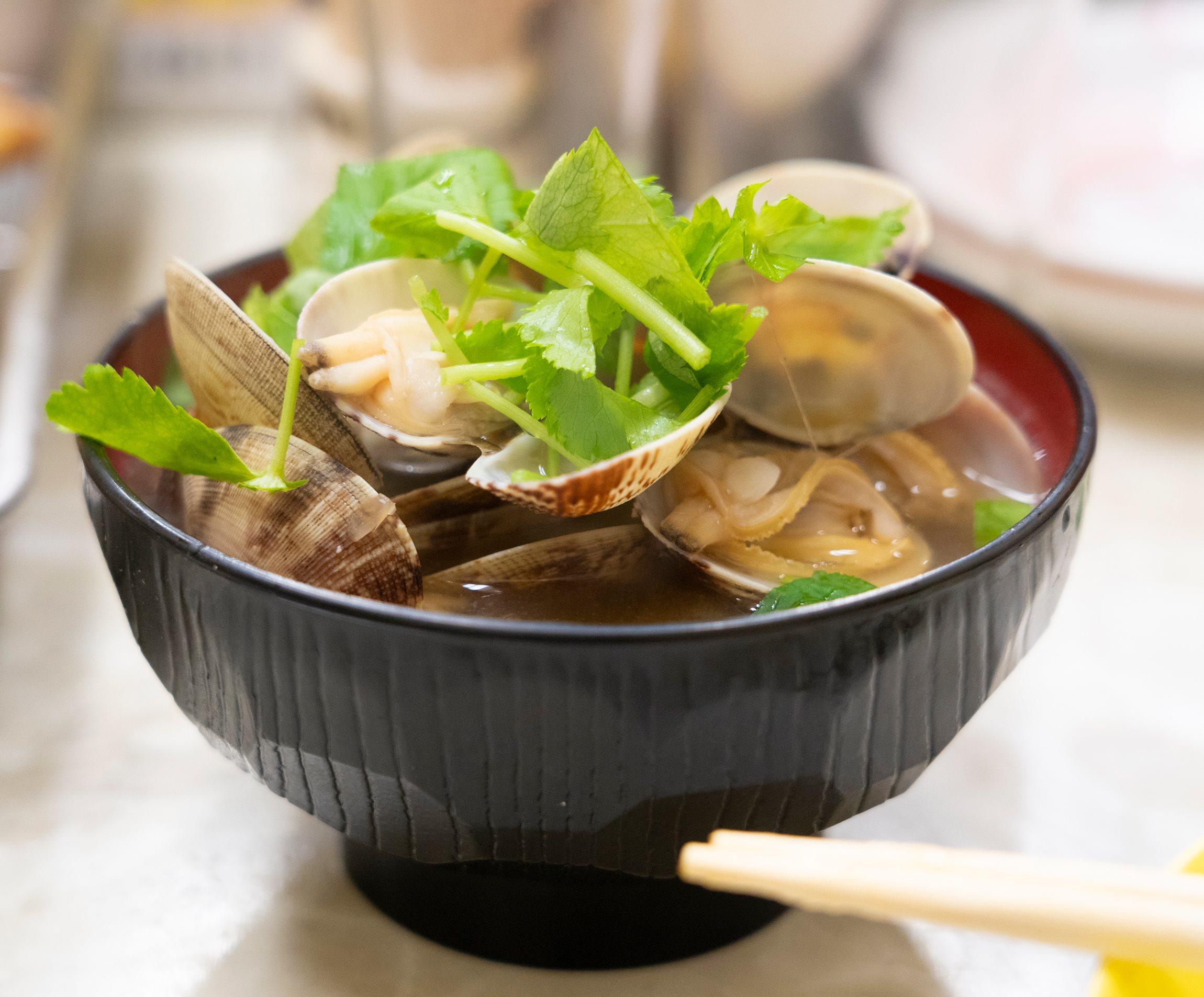 「あさり汁」を頼むと、あさりが山盛りになって出てきた。
