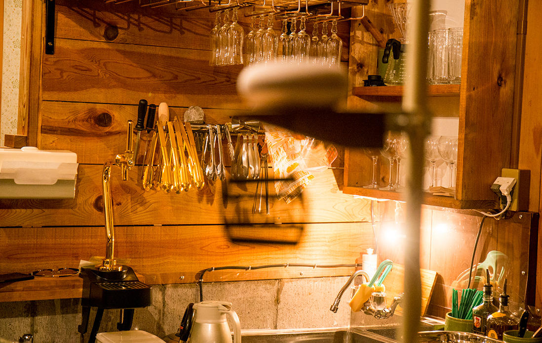 「地元の方のお話を聞くと、かつては和菓子屋さんを営んでいたお宅のようです。工場があった場所に残されている棚も大事に使わせてもらっています。造りがしっかしているのでなるべくその雰囲気を生かしながら、自分たちの手でほとんどのリノベーションを手がけました」