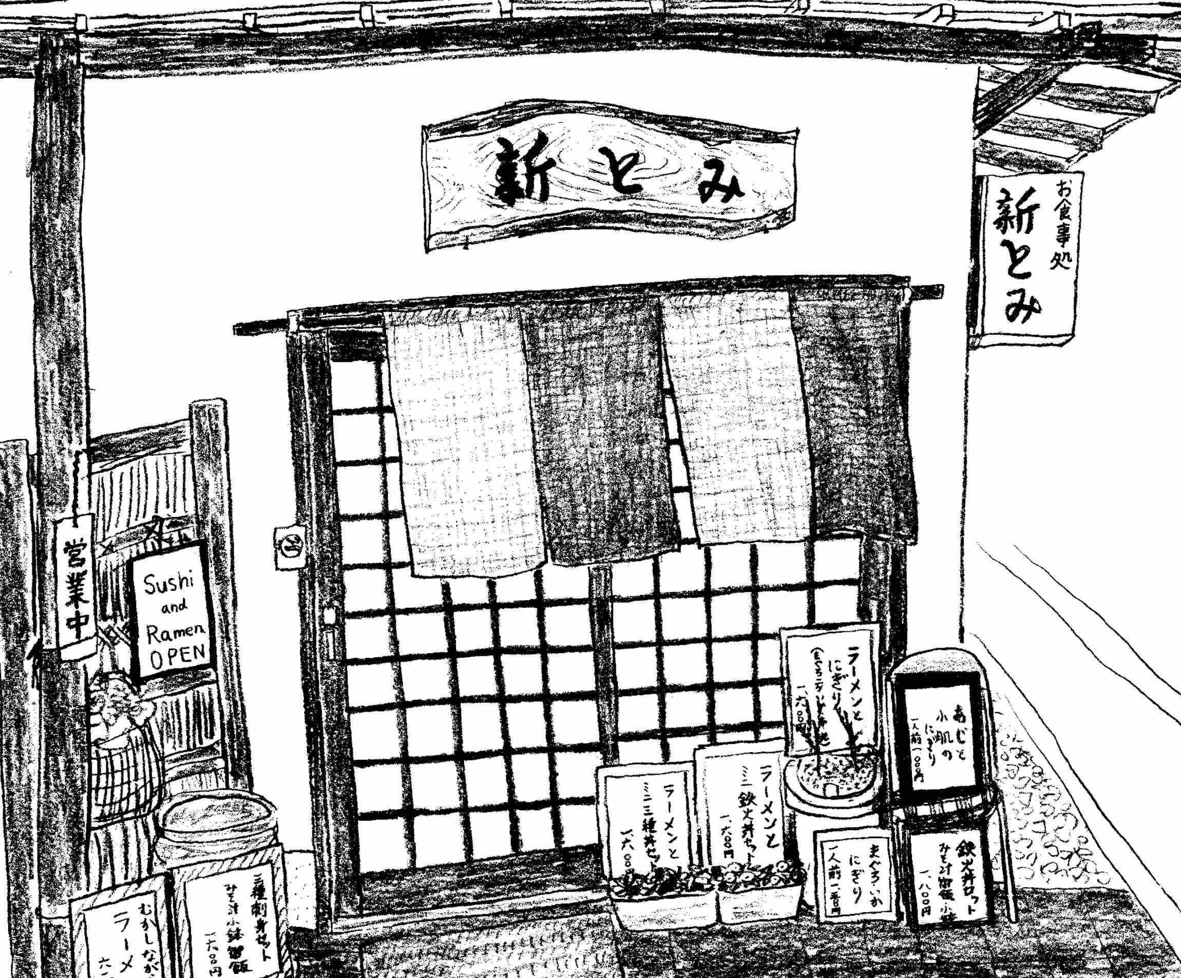 「ここです。看板は漢字の“新”で『新とみ』なんですけど、箸袋はひらがな4文字で『しんとみ』なんですよ。どっちが本当なんだろう?」