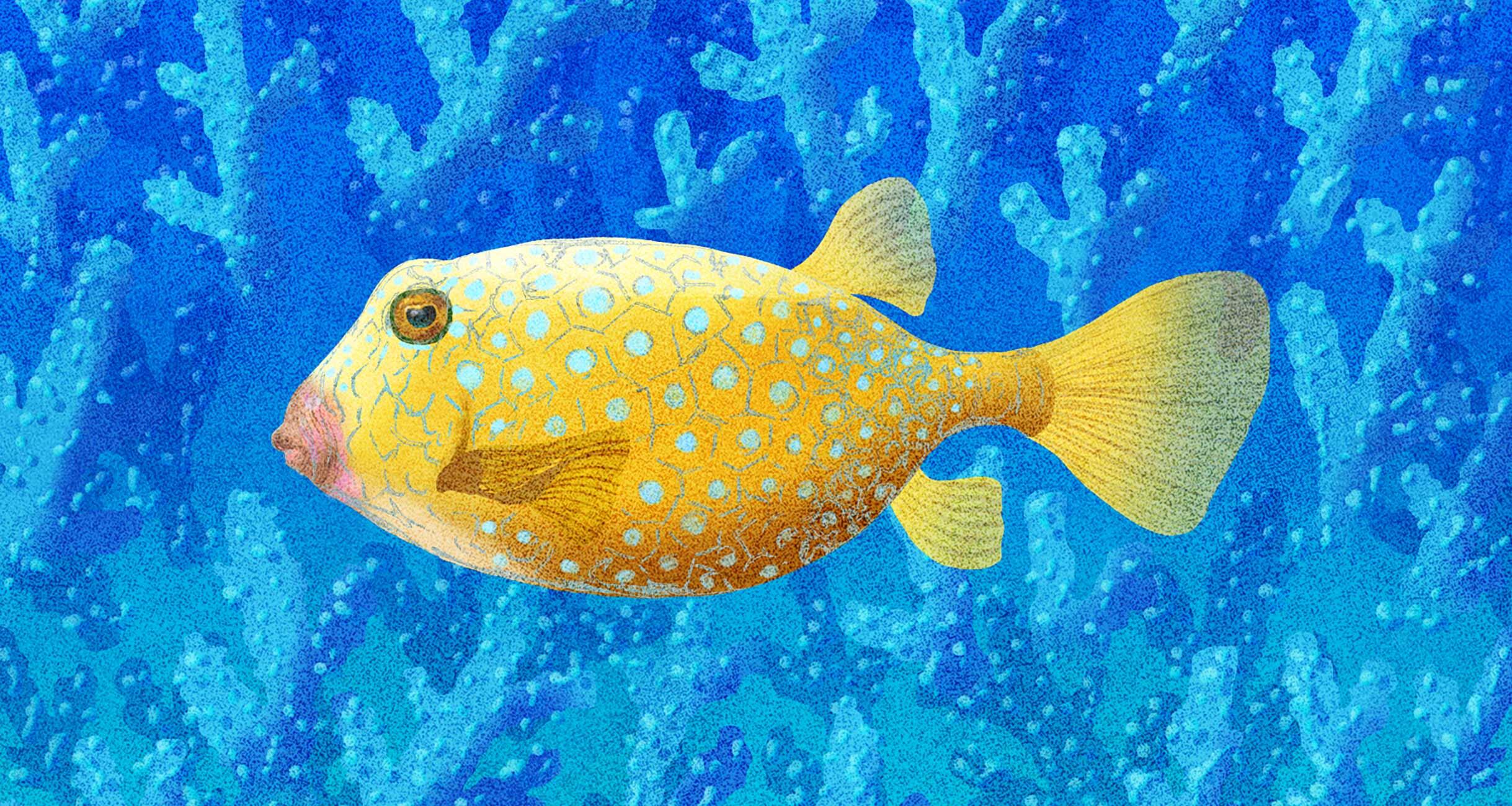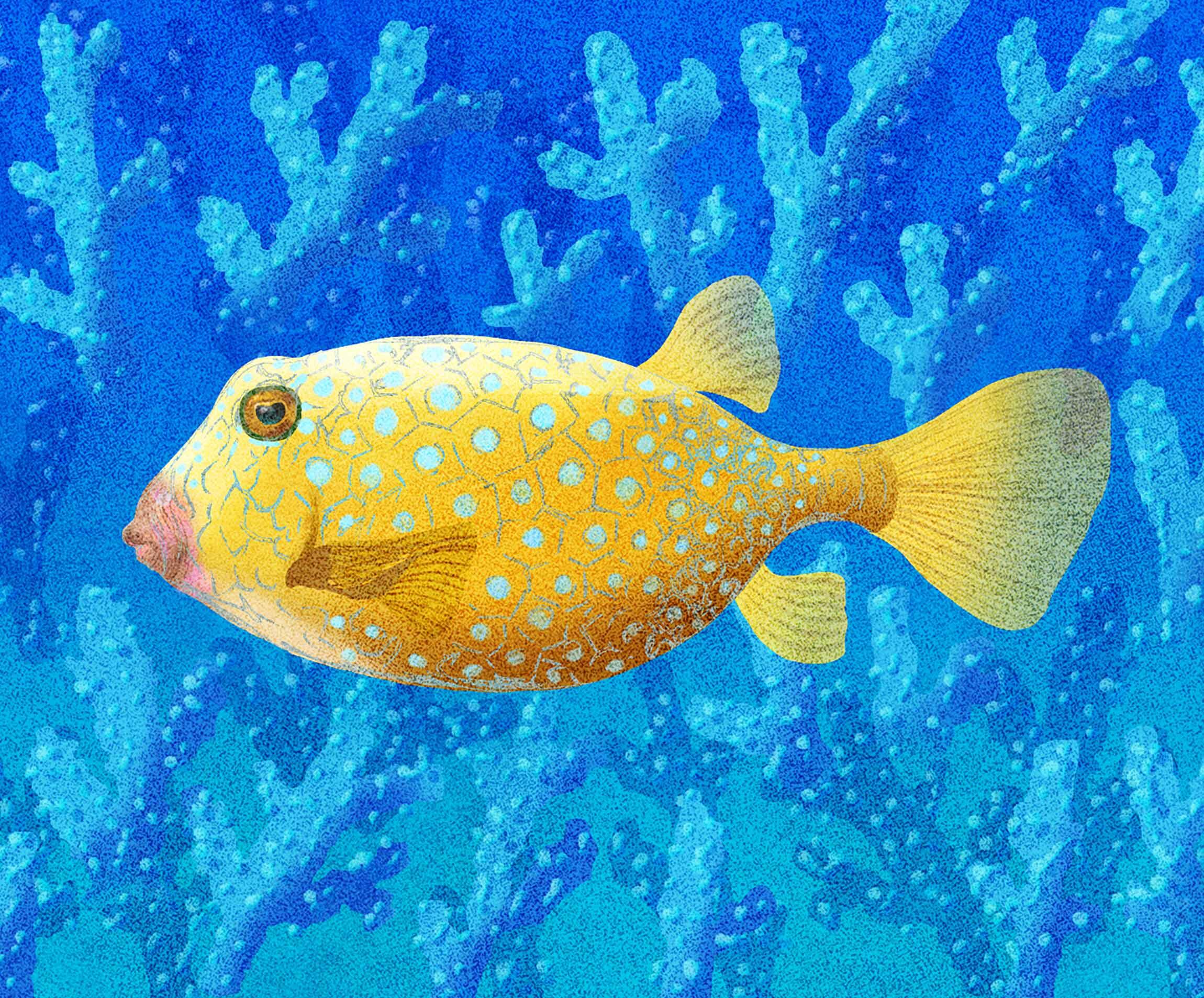 ハコフグは本州や四国、九州の沿岸によく見られる。船どまりなどで遊んでいて、海面にプカプカと浮いている全長十数センチの魚を見かけた人は多いはずだ。あれがハコフグである。さかなクンがかぶっている帽子がそれ、というと、さらにおわかりだろうか。動作がにぶいから子供でも虫網で簡単にすくいとることができる。虫網のなかのハコフグは胸ビレをピクピクと動かすだけで身動きがとれていない。その様子はなんとも愛らしい。