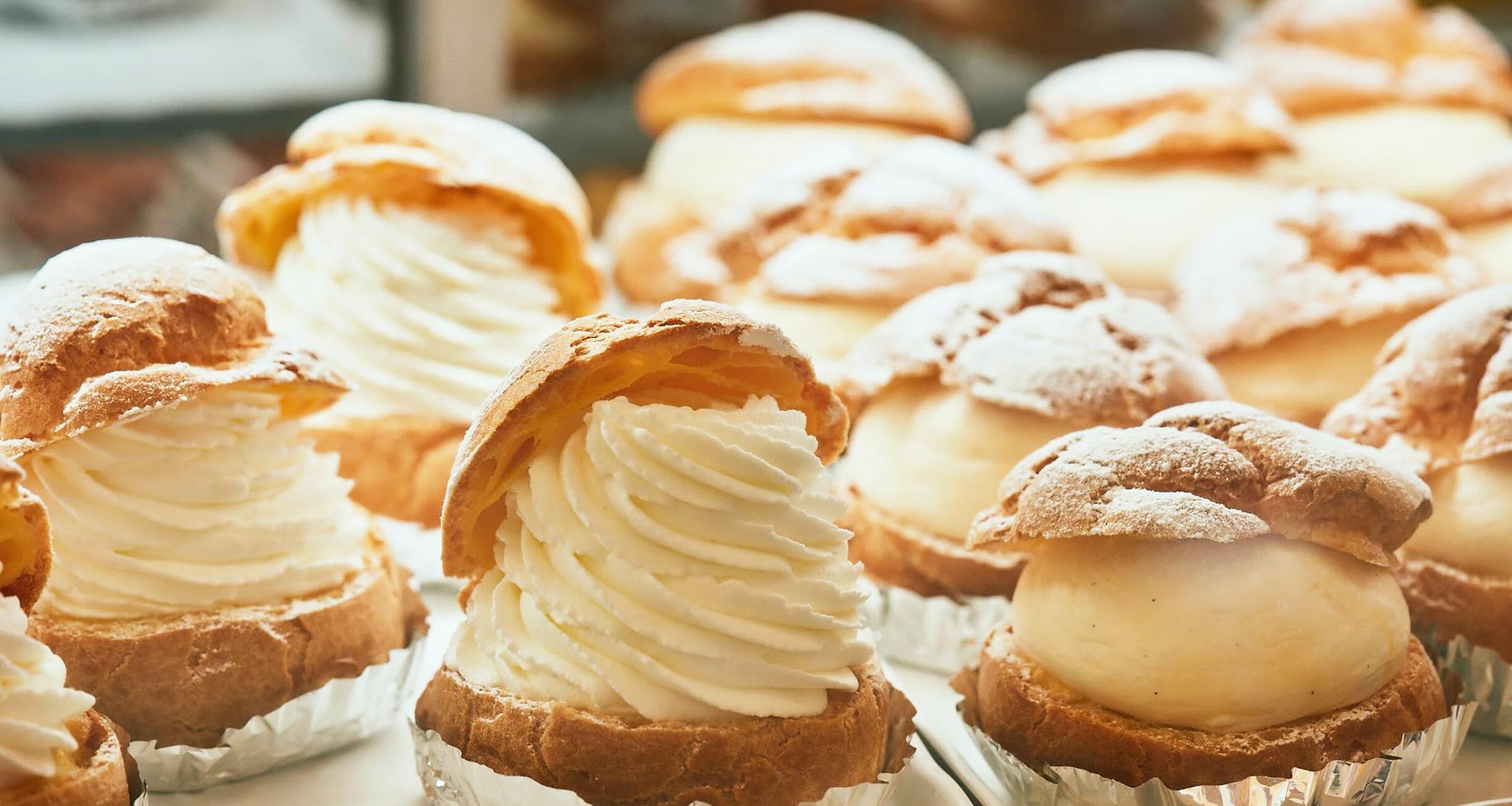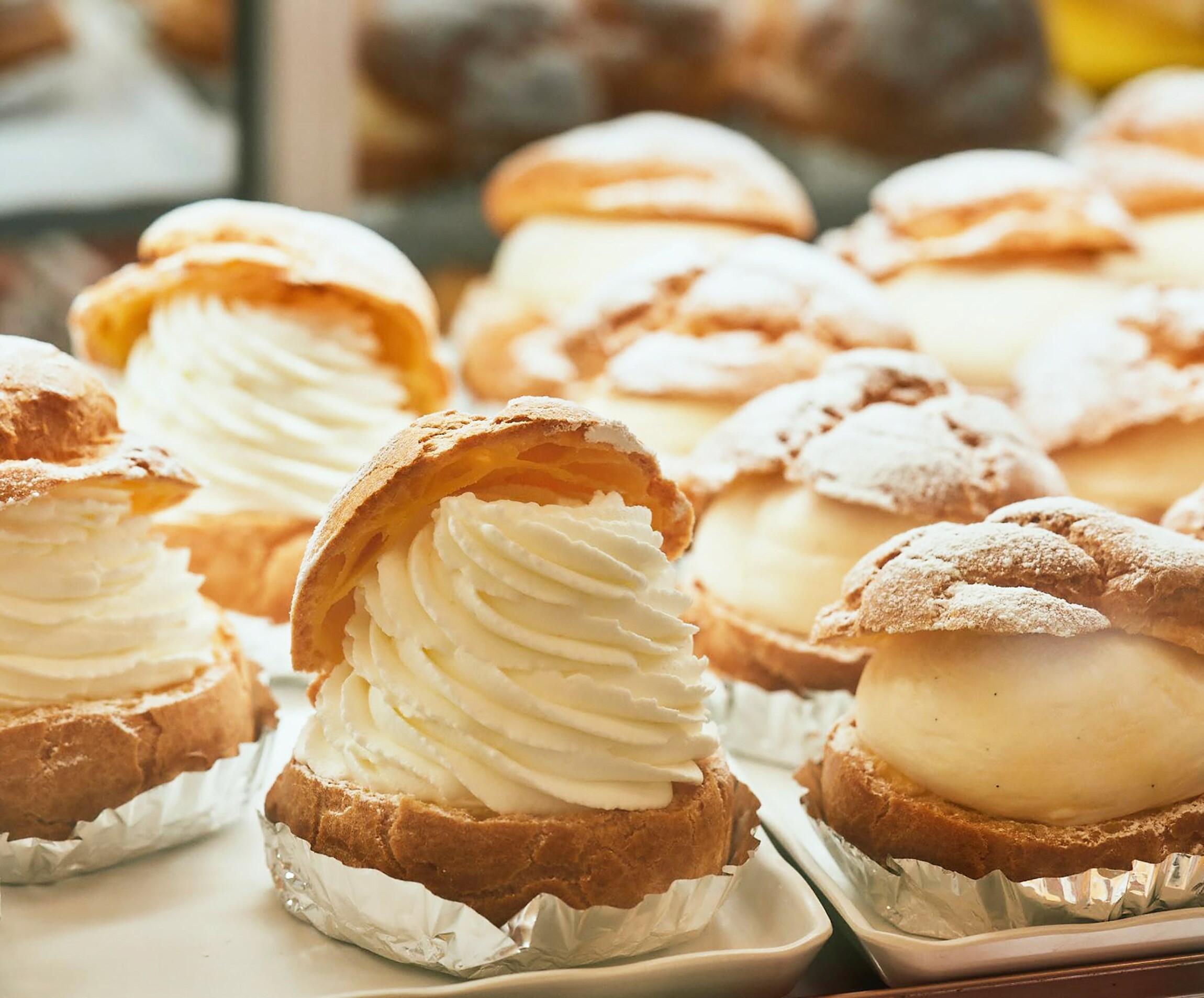 「トリアノン」の魂は、生クリームに宿る。ふわふわで弾力があるが、口の中でなめらかに溶けていく。秘訣は、専用の機械を使い、空気をたっぷり抱き込ませること。この食べ心地が堪能できる“生クリームのみのシュー”は、なじみ深いカスタードシューとともに並ぶ。