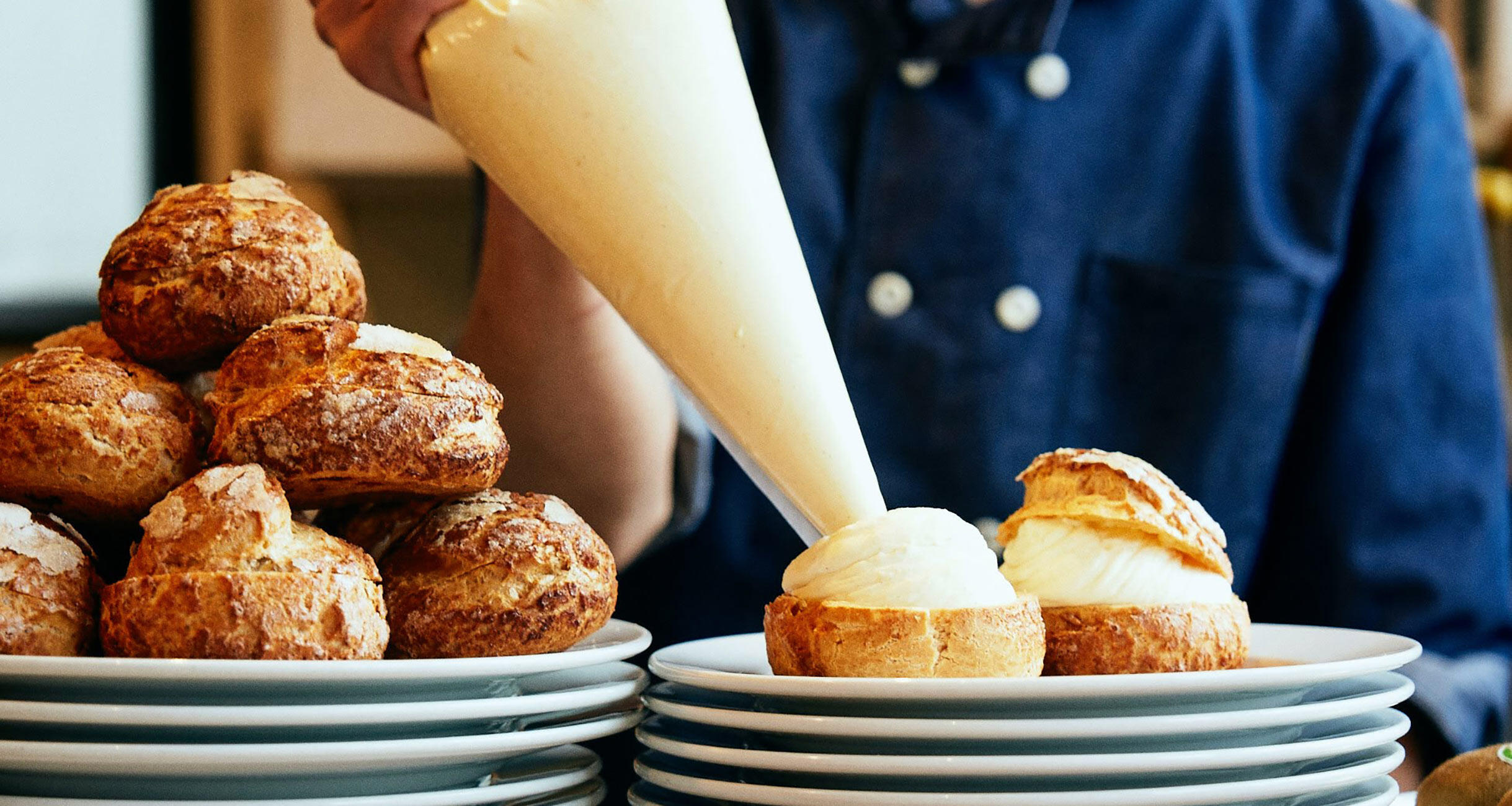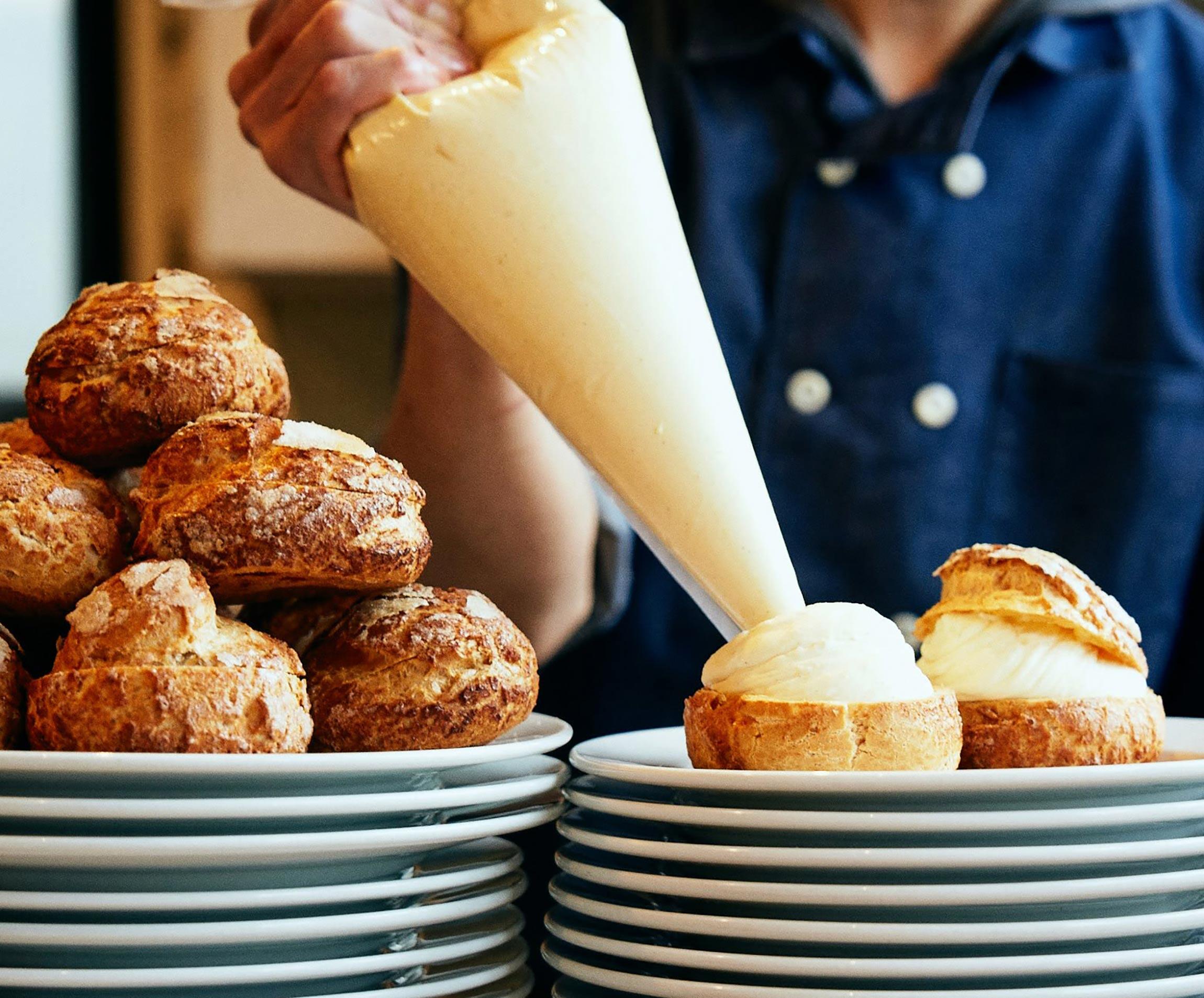 夏のアルプスの草原が見える!一口食べて浮かんだのは、その言葉だった。大ぶりなシュー皮に滴り落ちそうなほどたっぷりと入 ったクリームはつやつやと美しく、新鮮な牛乳をするりと飲むように瑞々しい。