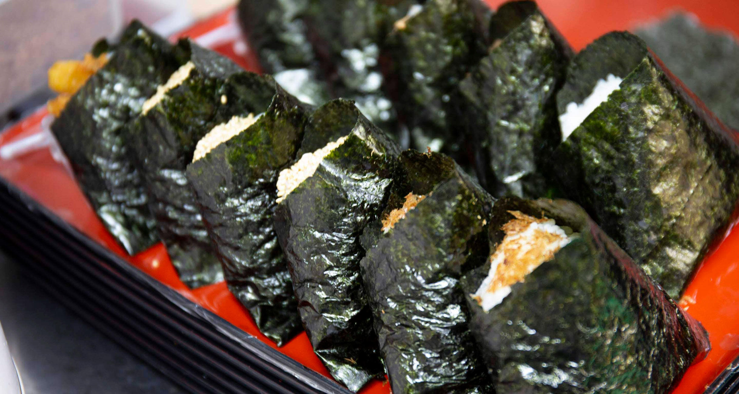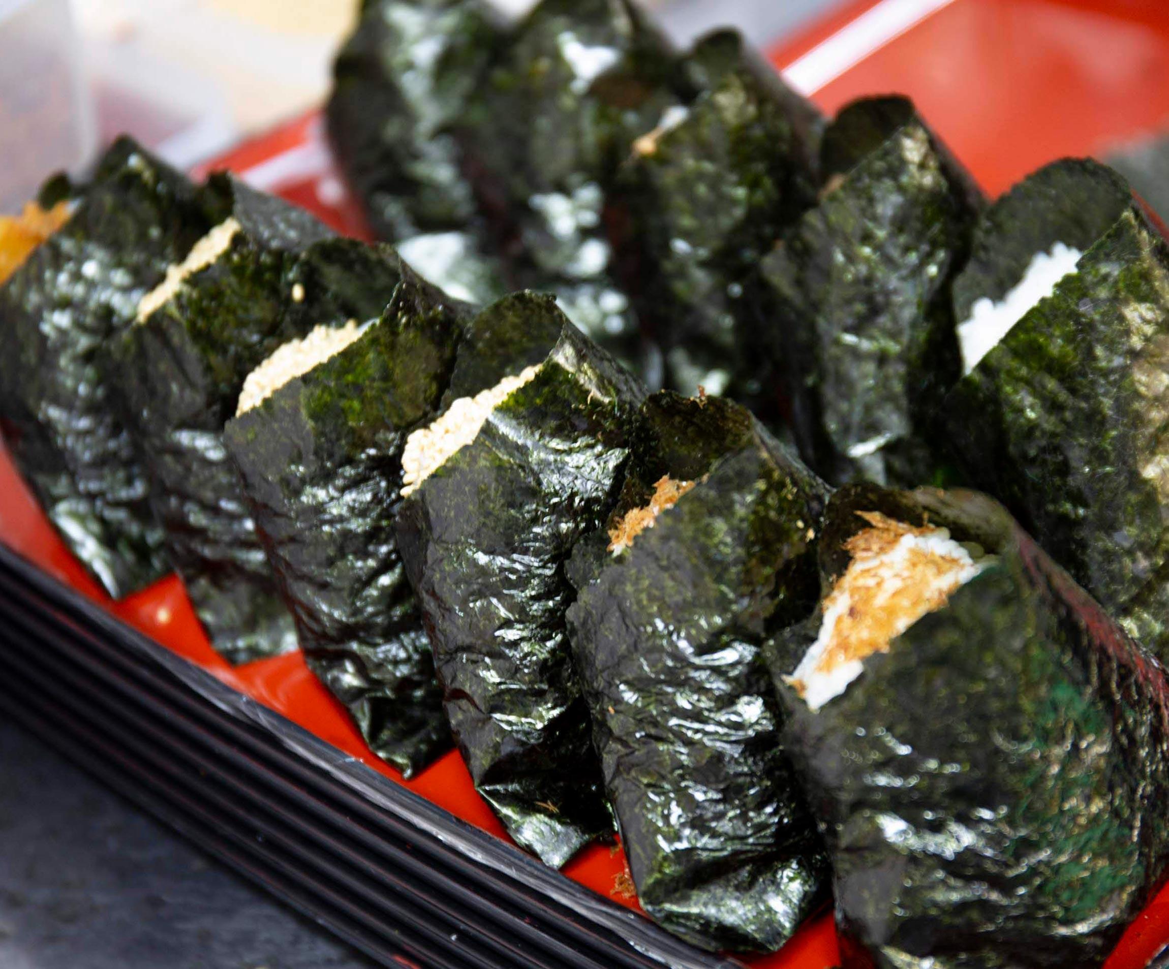 その自慢の米で握った“ナイスなボケナス”(故坂上二郎さんの好物)を食べて納得しない者はいないだろう。ちょっと甘めの味噌だれと、しんなりした茄子の歯ざわり。そこへ大葉の香りが加わり、ふっくら甘いご飯が包み込む。炊き加減が絶妙で、米の強い存在感と具を引き立てる奥ゆかしさが同居している!さらに海苔の香りと歯ざわりがアクセントを与えると、思わず唄い出したくなる。そうだ。おにぎりは米と具たちの合奏なのだ、と合点した。