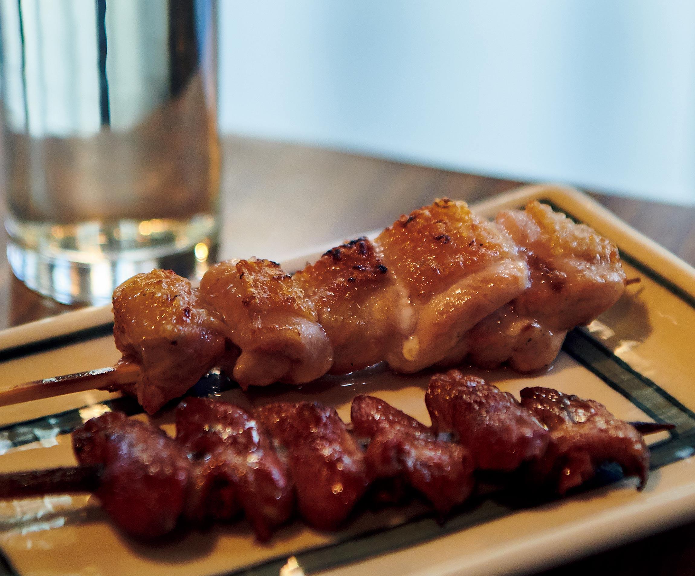 口に入れると溶け、濃い旨味を後に残すレバーを皮切りに、かわ、もも、はつ、と、丁寧に焼き上げた串が出てくる。どれも、客を驚かせるような見た目ではない。一見、何の変哲もない。ところが、口へ運ぶと肉質の良さと焼きの塩梅に、ちょっと驚き、改めて、かじりついた串を見直したりする。