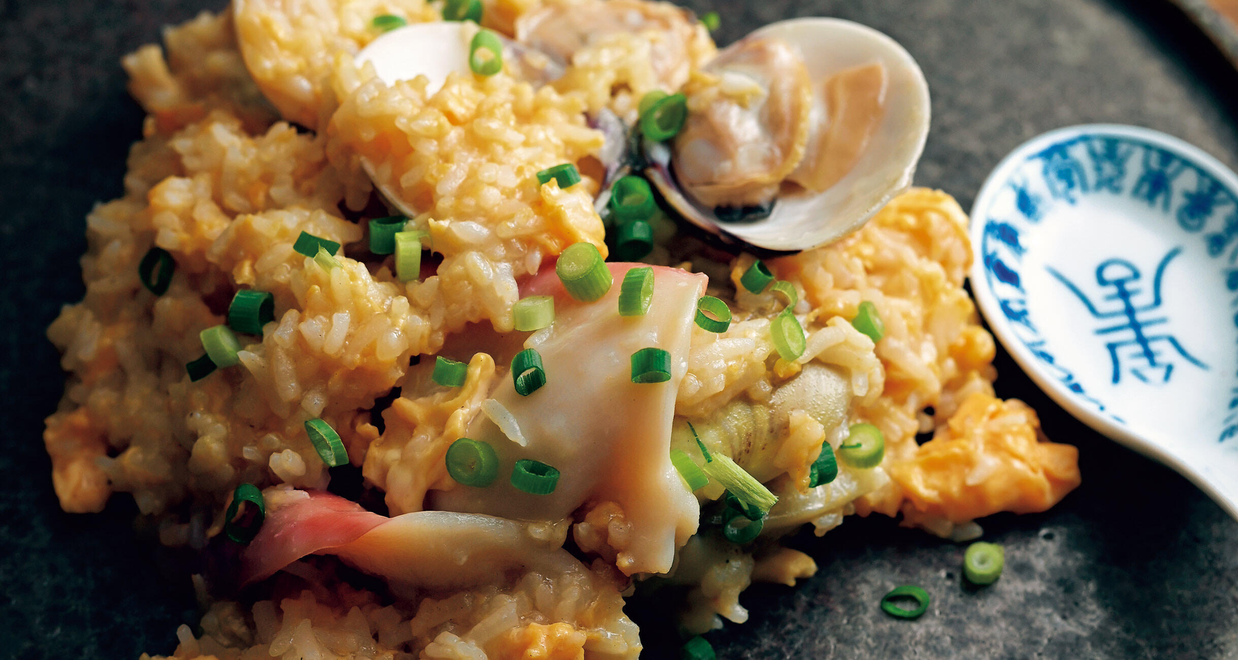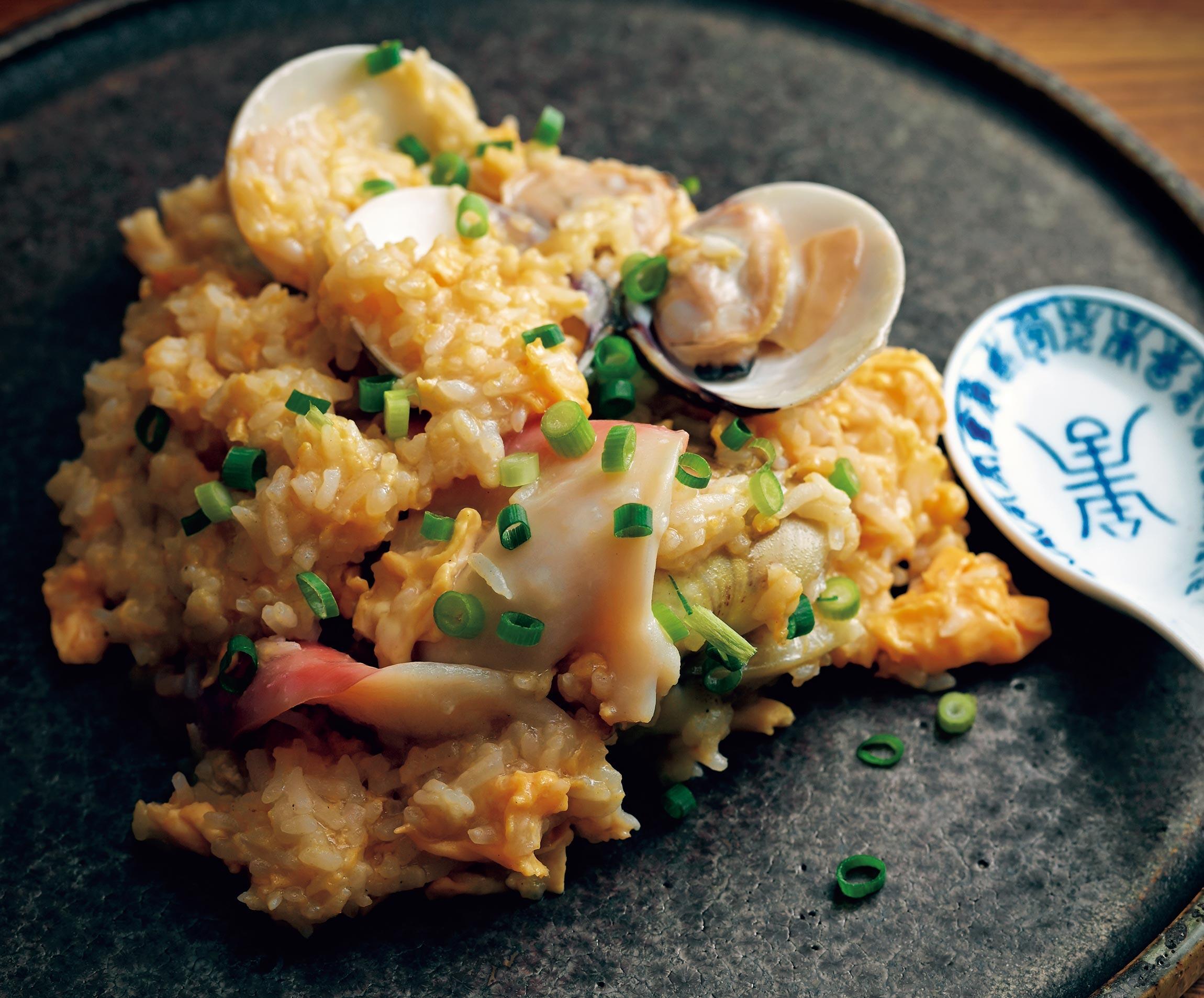 貝のだしがじんわりしみたリゾットのような炒飯は、濃厚にしてヨーグルトのように爽やかな後味。聞けば調味の素は鮎の熟れずしの“飯いい”。深い旨味があり、冷めると味が締まり、これがまた旨い!ほかの料理も豚バラと鮒ずし、鶏のせせりと野菜の古漬け、ひよこ豆と海老みそ、と予測困難な組み合わせ。でも食すとクリアな旨味と深いコク、ほのかな酸味が口中でジワジワ広がる、まさかの中華なのだ。