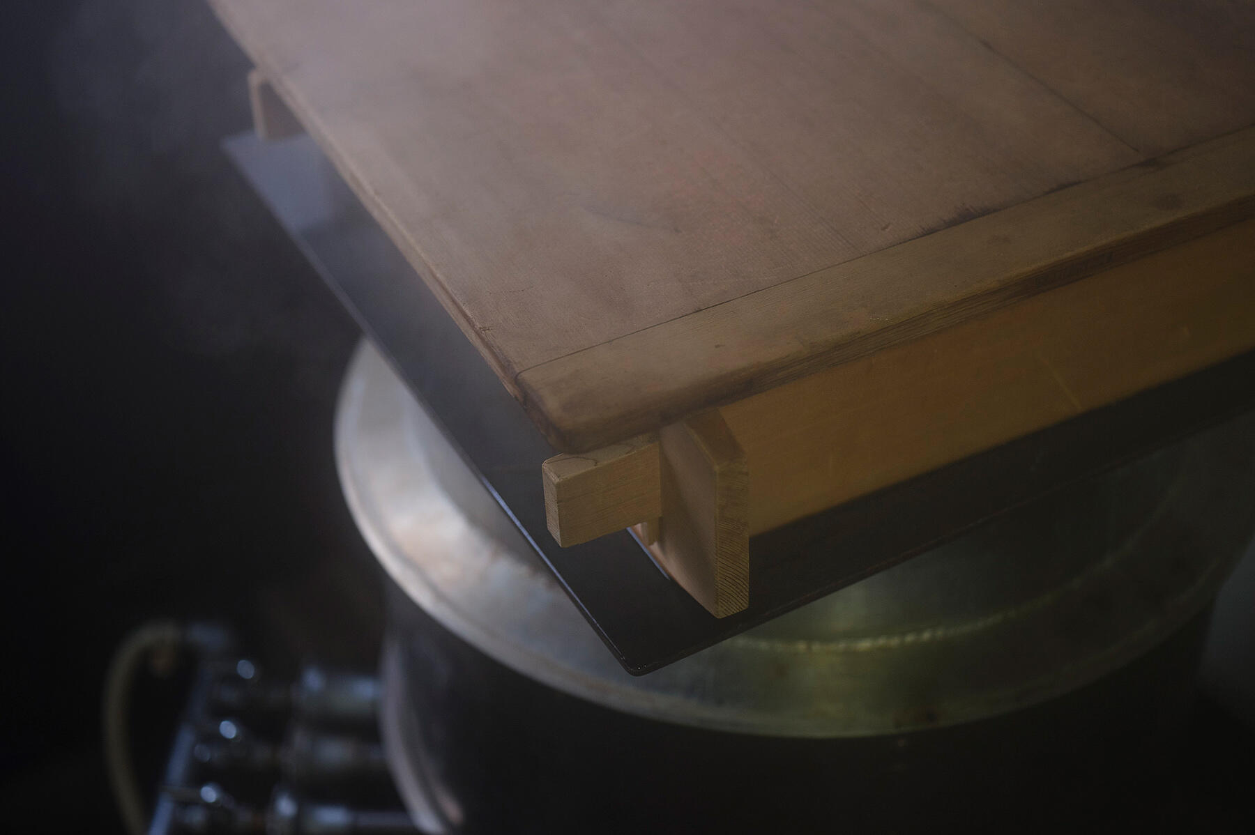 冒頭の大きな釜の上にはぶ厚い鉄板が載せられていて、その上に角せいろを置く。鉄板の真ん中には10円玉大の穴があいており、強い蒸気がそこに集約されて立ちのぼるという仕組み。