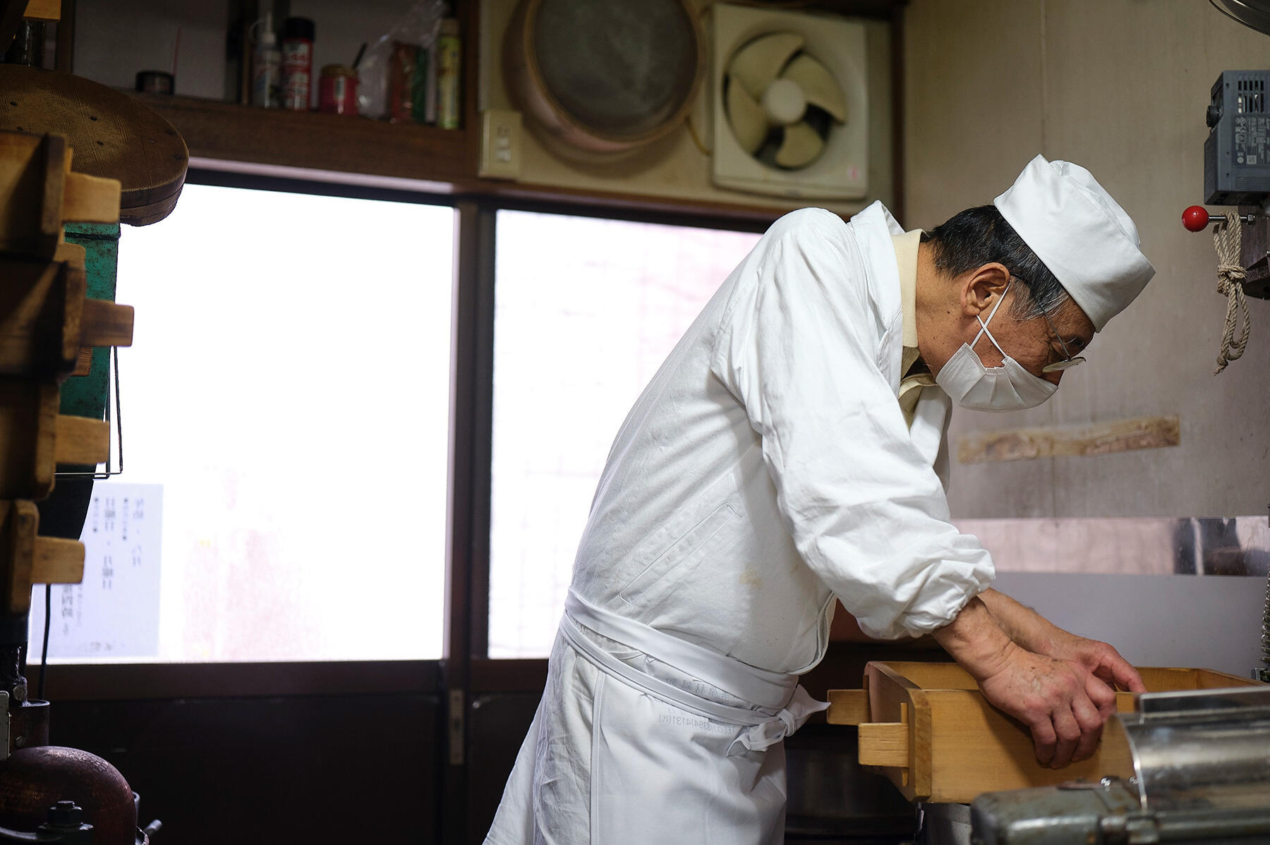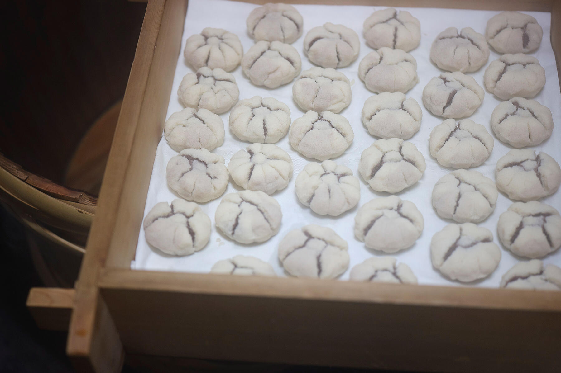 きちんと蒸気が上がっていないと、温度が維持できずに蒸し上がりに差が出る。「釜の上にせいろを置く」、というだけの単純な作業も気は抜けない。