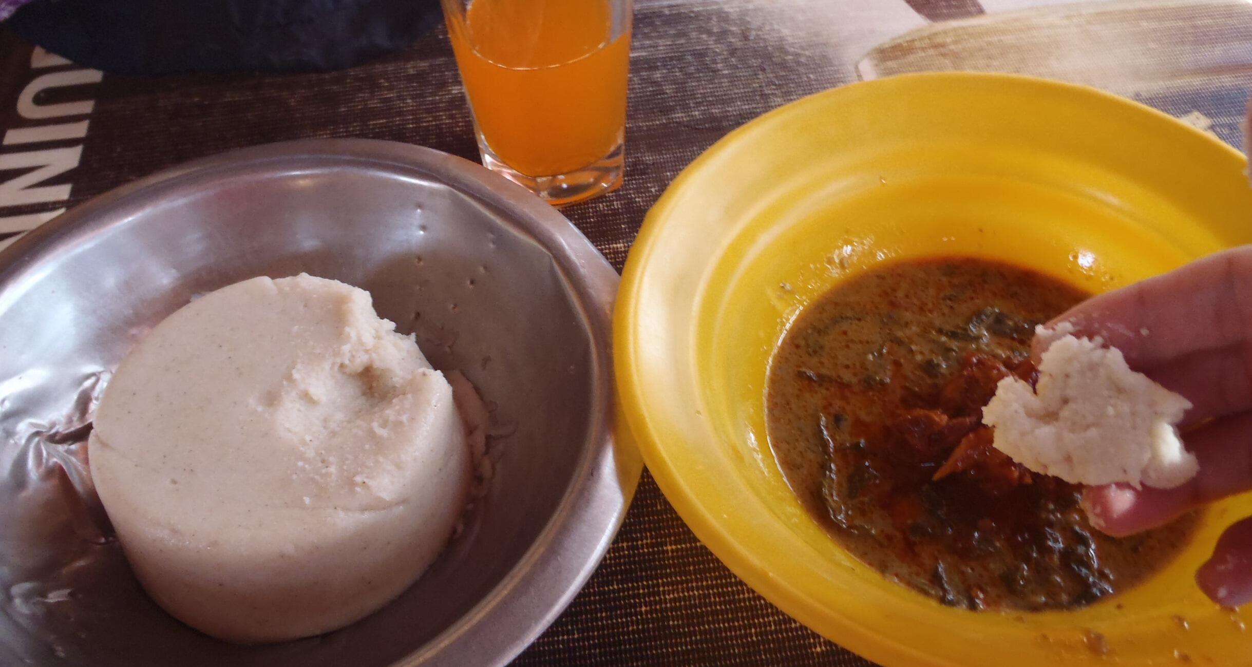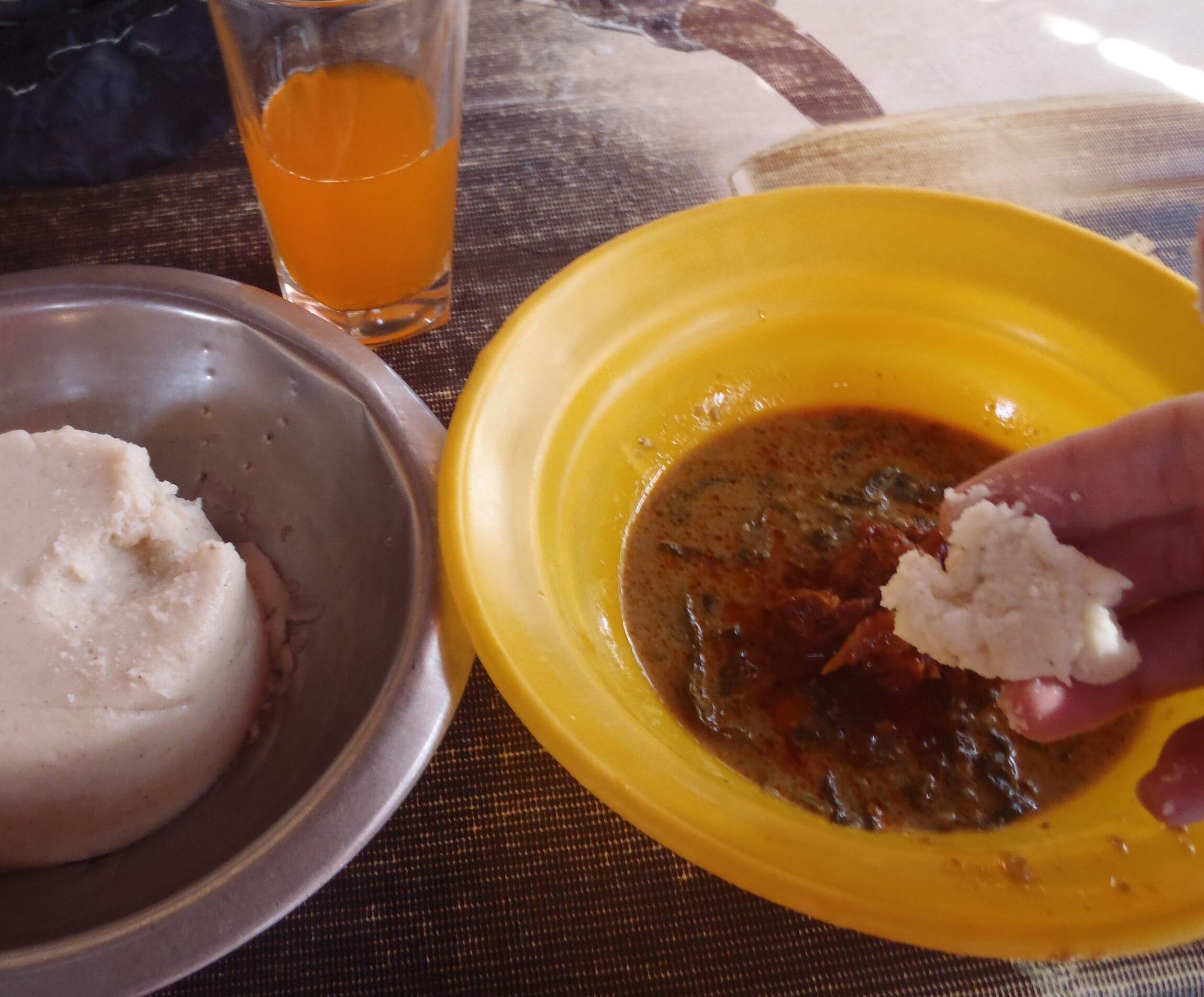 それにウガリをつけて試食してみると、意外や意外、ちゃんと現地のものに近い味がする。旨い。なぜこれを最初はまずいと思ったんだろう、と首をひねるほどだった。