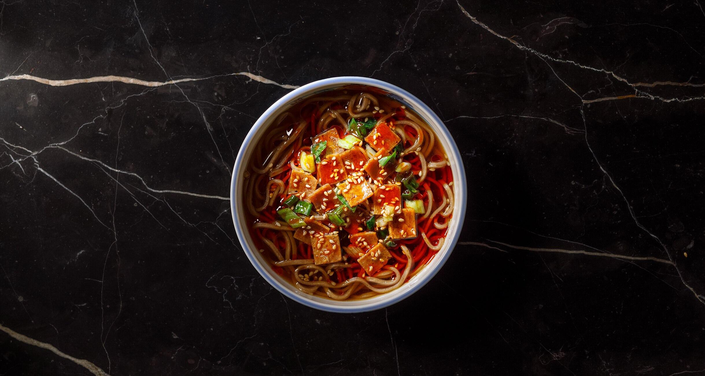 なかでも大いに注目を集めたのが、調理の仕上げにかける特製「港屋 辛香るラー油」だ。「港屋」の蕎麦といえば思い出されるのが、あとを引くような辛味。今回の商品では印象的な辛味を加えるために後入れのラー油が付いている。出来上がりにスープに垂らすと、湯気と共に食欲をそそる香りが上ってくる。
