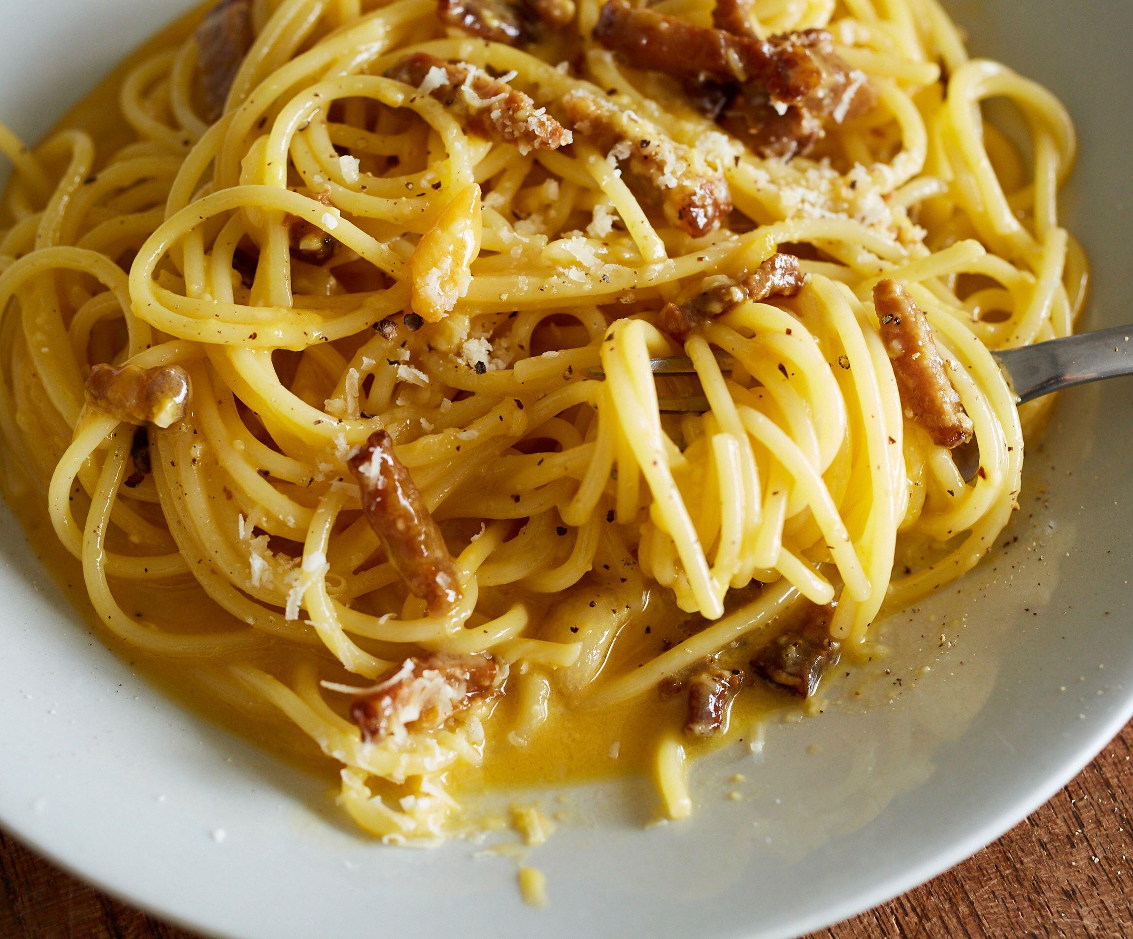 今日のお昼はパスタにしよう!!そう決めてからめくるページの手が走る。そうそうあの時撮影した、大庭先生の塩麹カルボナーラ!冷蔵庫には美味しいベーコンもパルミジャーノもあるじゃないか。塩麹を入れたカルボナーラは初めての味。撮影でも食べ過ぎた記憶が……。レシピを見ると茹で汁以外塩は入れずに塩気はチーズとベーコンと塩麹。