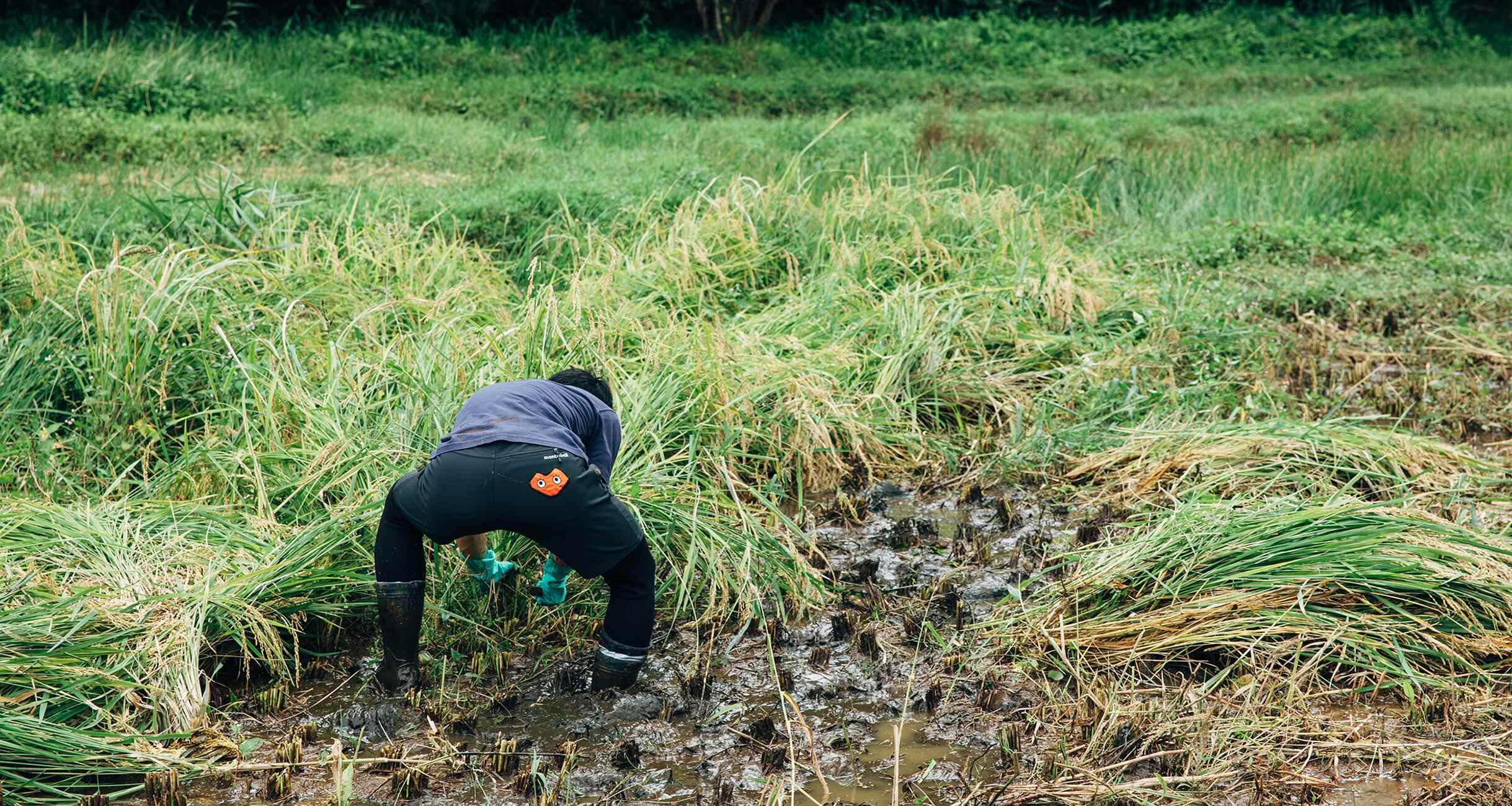 小山谷津地域の田んぼの中でも、本日刈る田んぼは特に順調に育ったという。「この田んぼに関しては肥料を蒔きませんでした。また、苗を大きくしてから植えたのがよかったのかも」(宍戸さん)。さらに「最初の除草をすごく丁寧にやりました」とのこと。米も酒も、一年一作。なにが正解か今はわからなくとも、今年のトライが来年の指針になっていく。