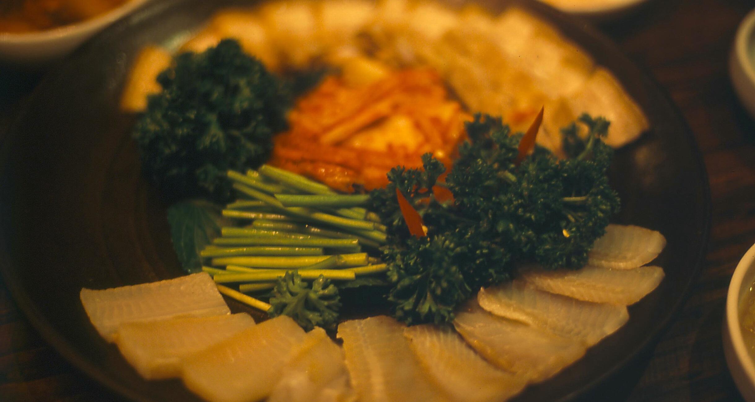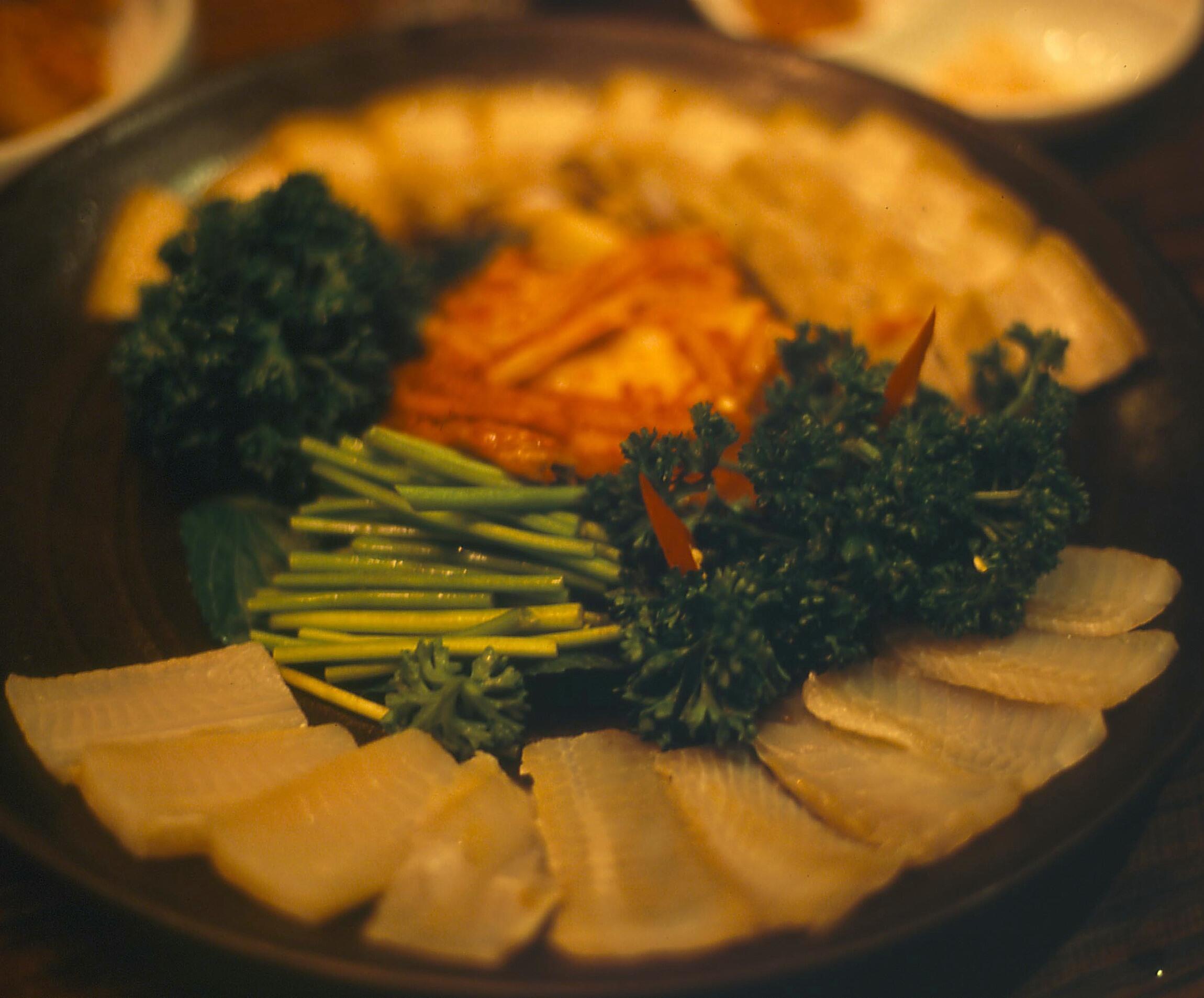 聞けば、ホンオ・フェは韓国南部の海沿い、木浦周辺の伝統料理で、ソウルに住んでいる彼らは全員、今日が初体験らしい。なんでそんなことを僕との会席でするんだ?と思ってしまったが、ホンオ・フェは高級食材であり、産地では冠婚葬祭で出されるものなんだそうで、あながちいたずら心だけで頼んだものではないらしい。
