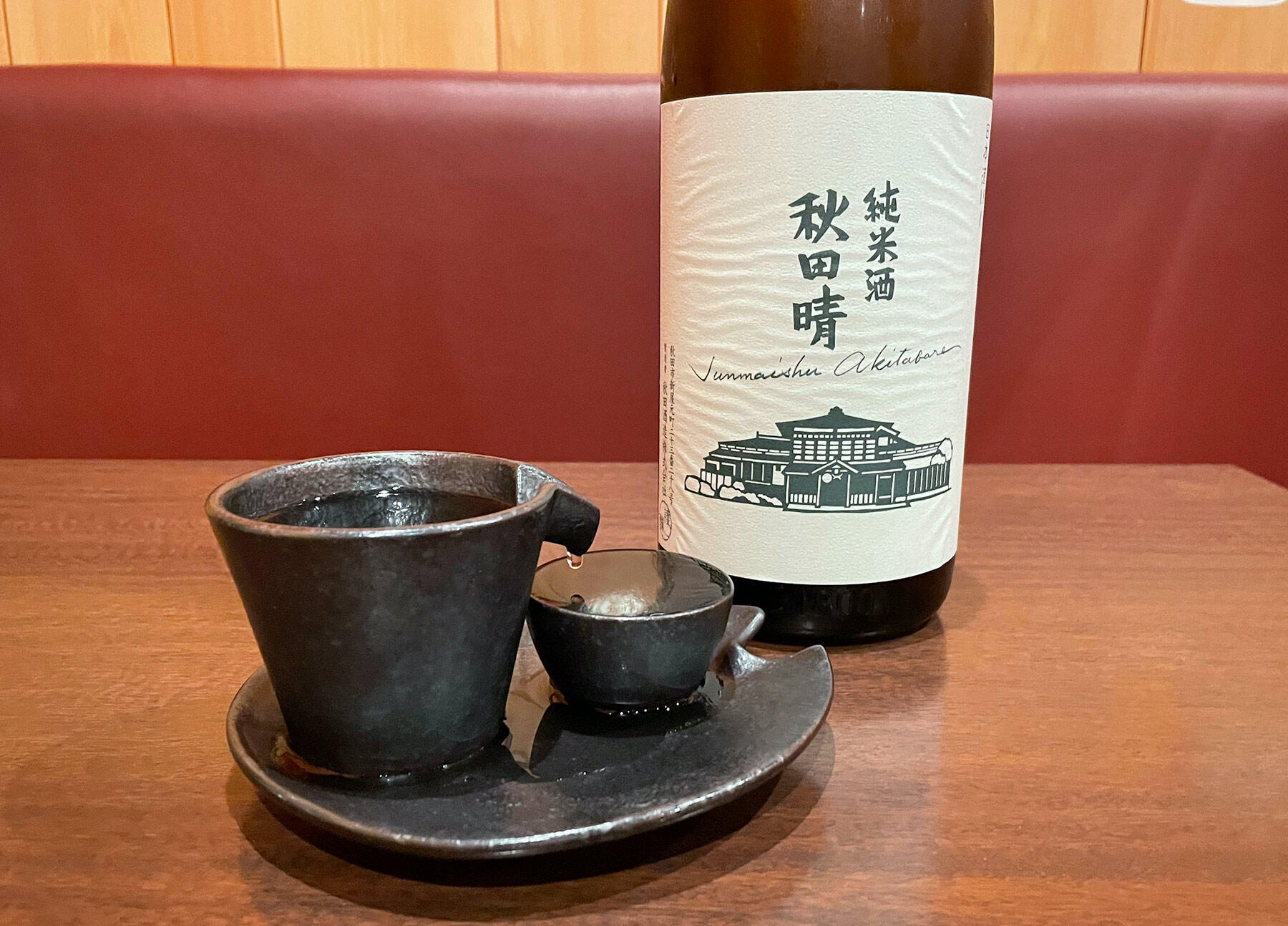 日本酒を注文すると、スレスさんが微笑みながら酒器をテーブルに用意。一升瓶から片口へ酒をなみなみ注ぐと、傍の猪口へとちろちろと流れ込む。まるで日本庭園の“つくばい”のような、なんとも和の情緒あふれる演出! もう一度言います。ここ、インネパ店でしたよね!?