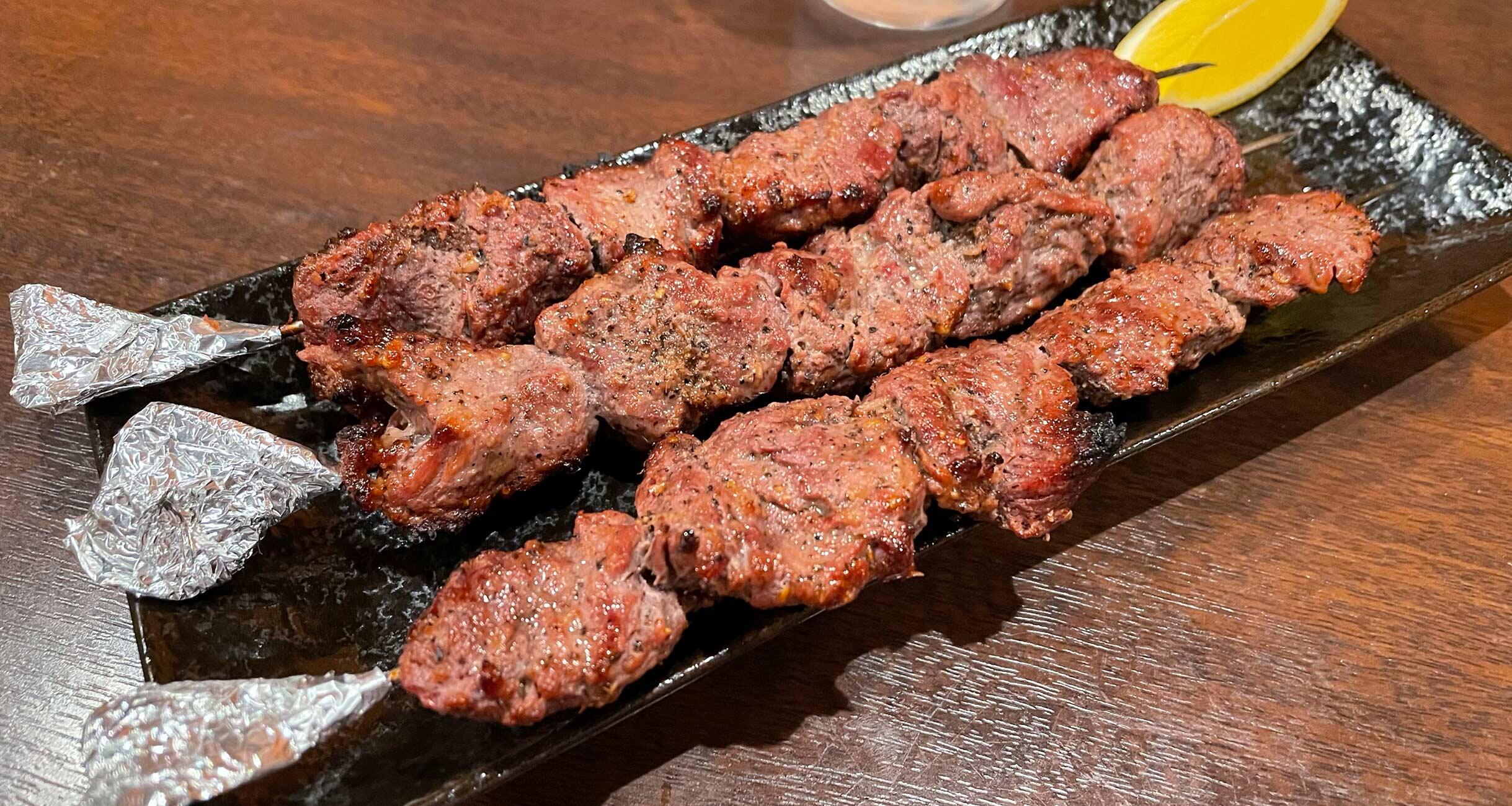 続いて到着したのは、“マトンの串焼き”。日本の串焼きのスタイルにネパールの味付けをミックスした、同店オリジナルのメニューです。