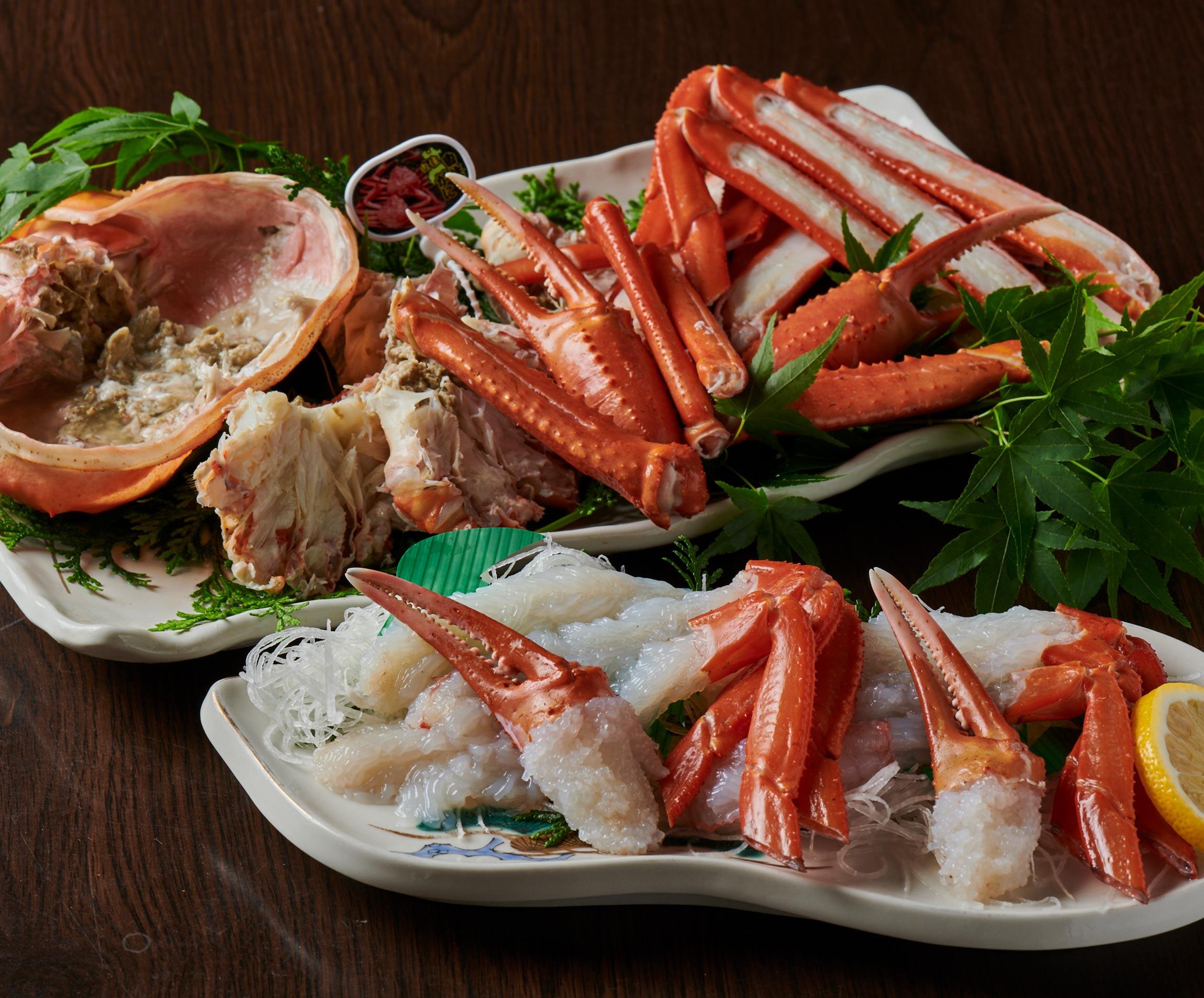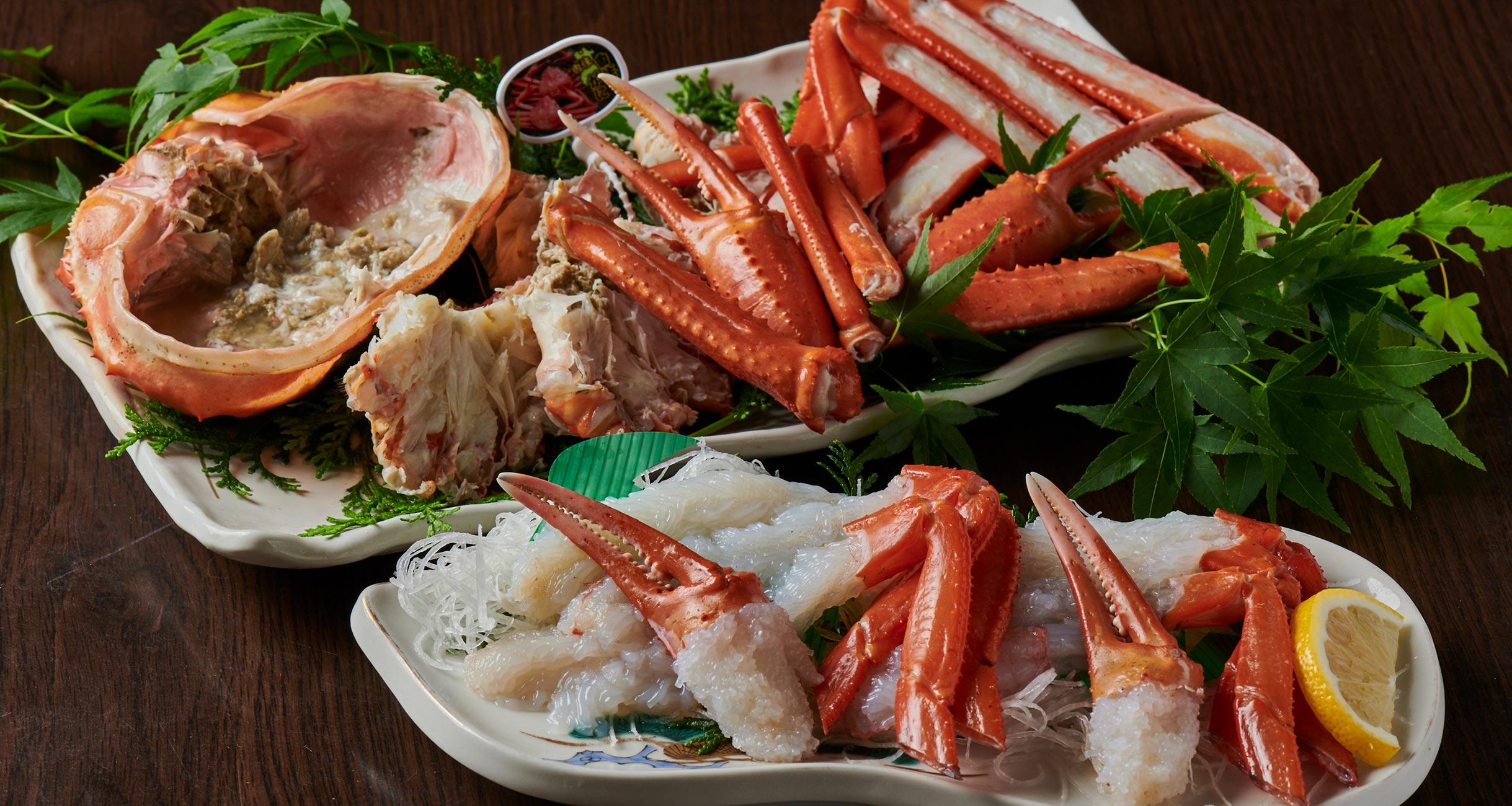 上がベニズワイガニのボイル、下は刺身。どちらも身がぎっしりで甘い。
