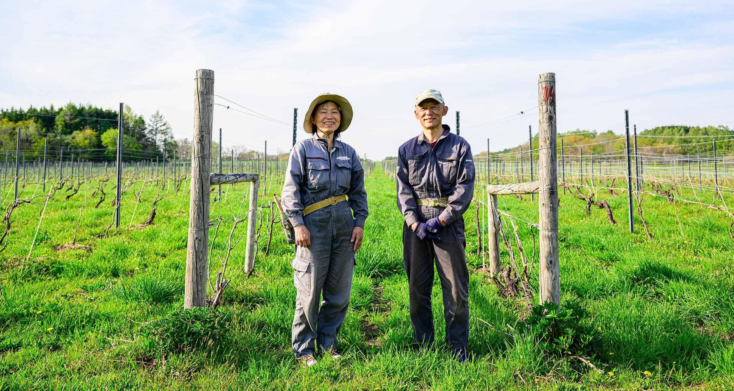 このワインを造っているのは、北海道空知地方栗沢町のナカザワヴィンヤードの中澤一行さんと由紀子さん。2人はこの地に畑を拓き、葡萄を育て、ワインを造り続けてきた。