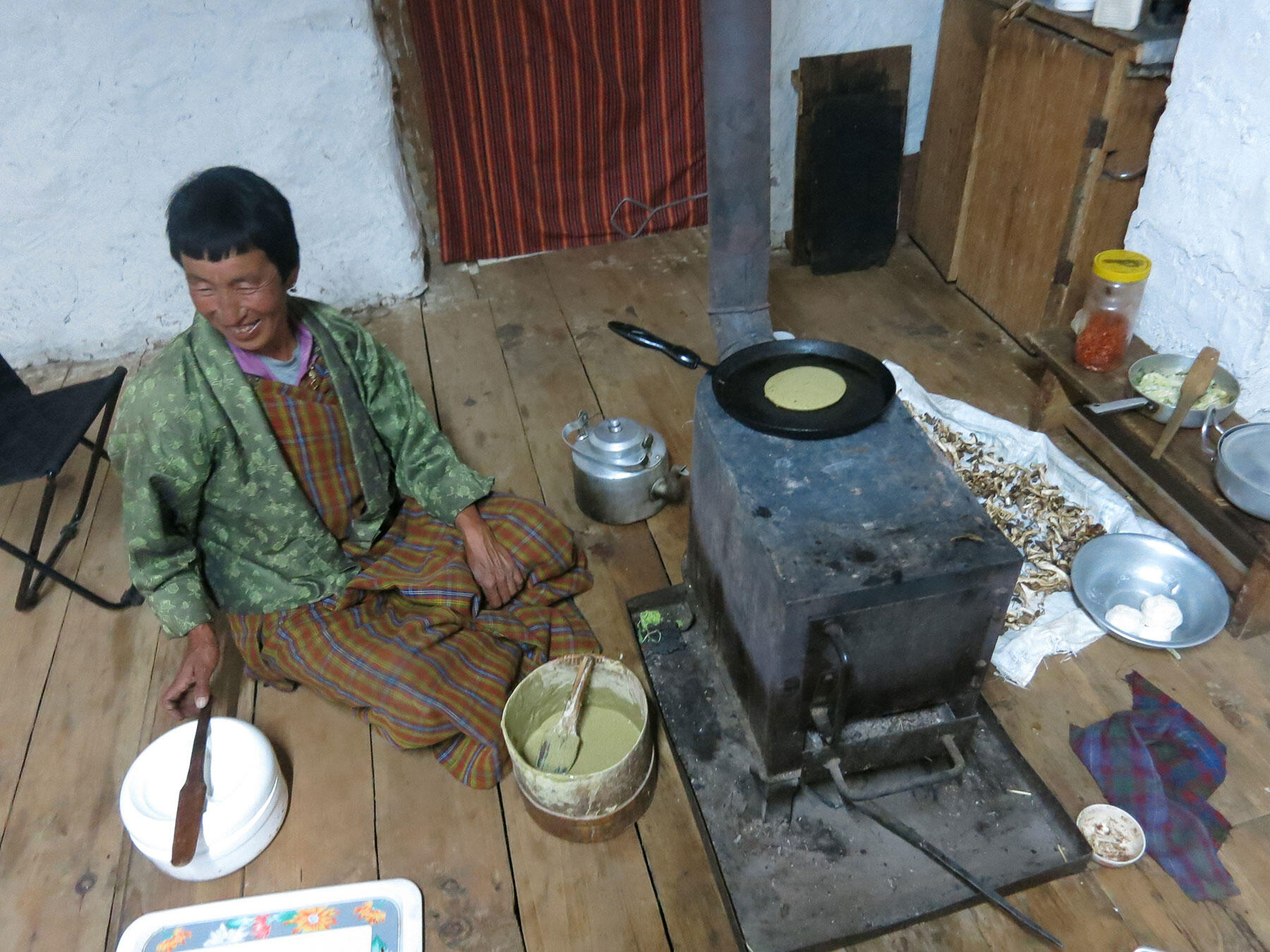 居間には薪ストーブがあり、真夏なのに薪が燃えていた。標高3000mを越える村だから夏でも夜は冷える。ストーブの上にはフライパンがのっていた。