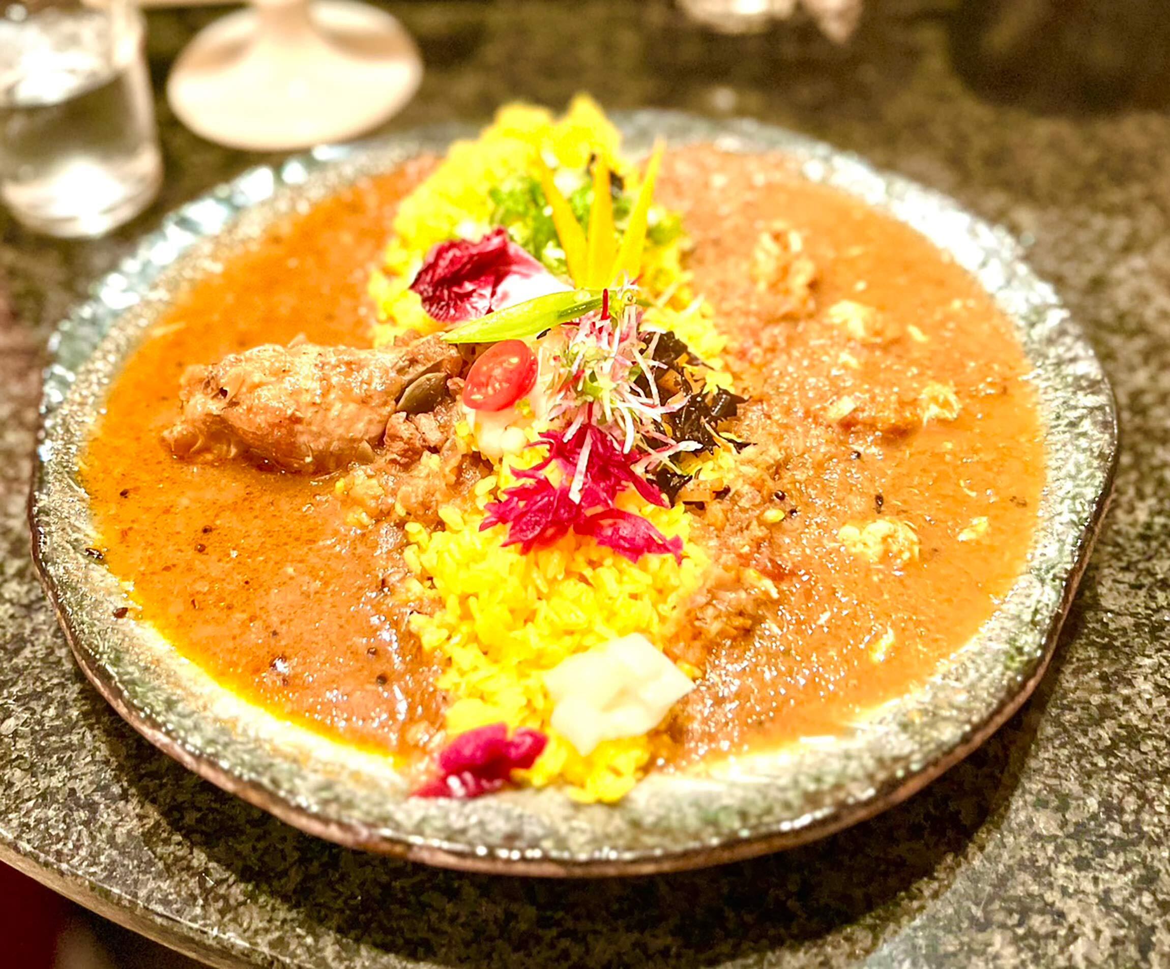 海老の殻の香ばしさを強く感じる風味と、海老の濃厚な旨みの出汁が、スパイスとの相乗効果で、一口目に鳥肌が立った。
