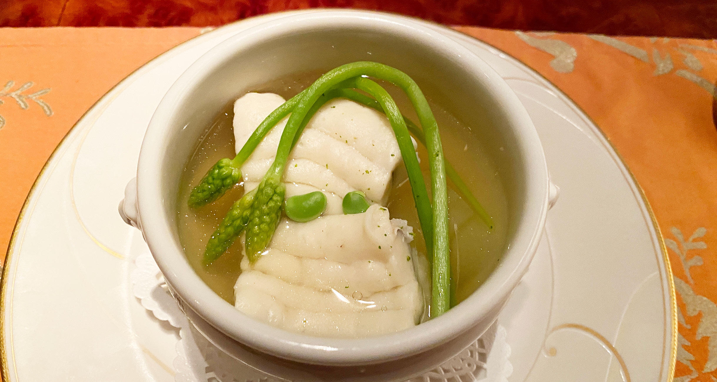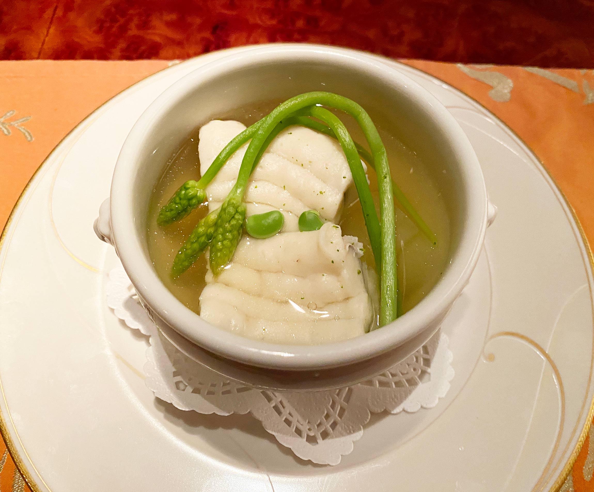 「お待たせしました。ハモのナージュでございます」