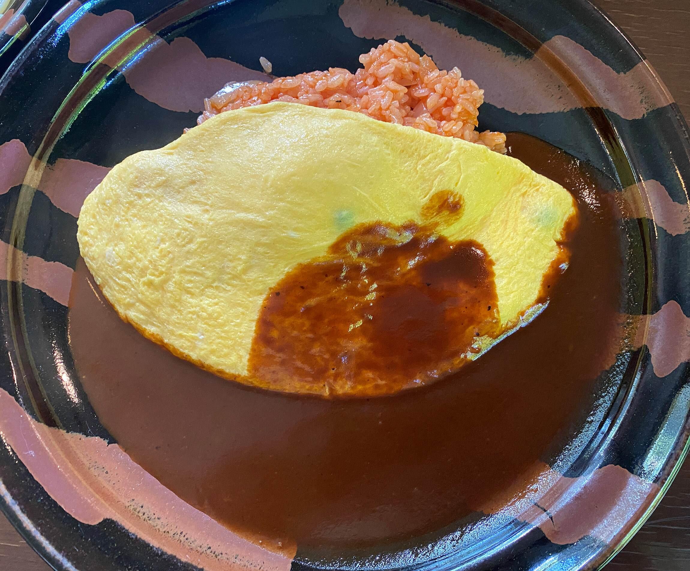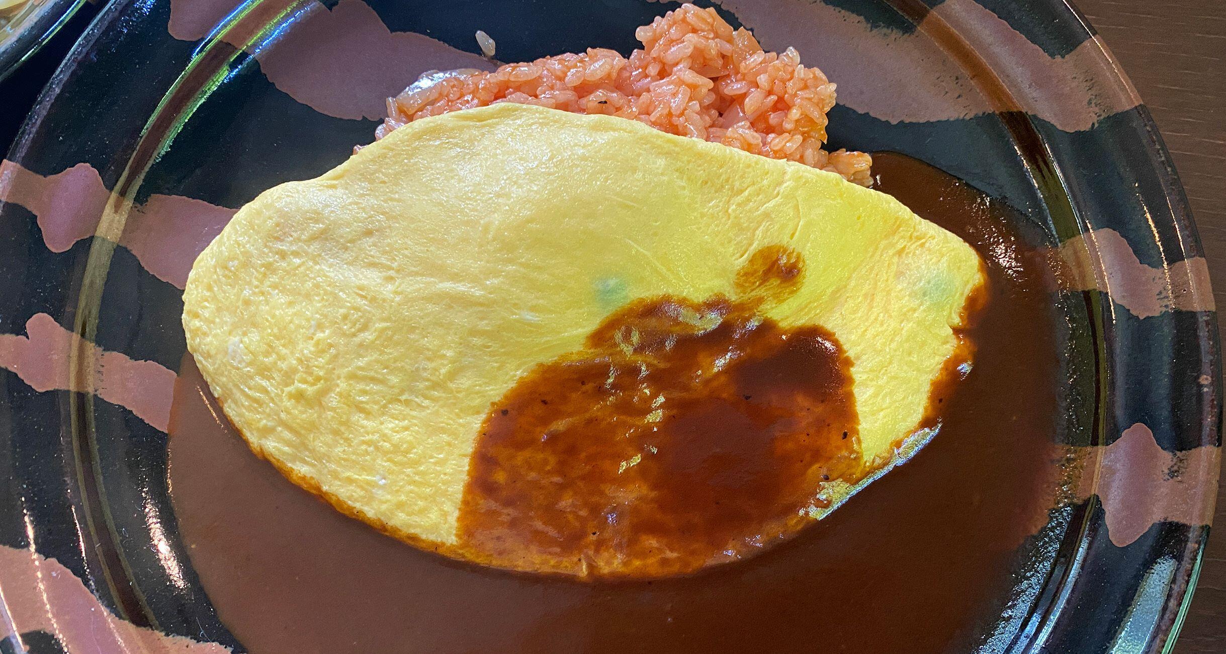 そして最後に“オムレツライス”。ケチャップライスにふわりとしたオムレツがのり、たっぷりのデミグラスソースがかかった、見た目も味わいもくっきりとしたコントラスト。