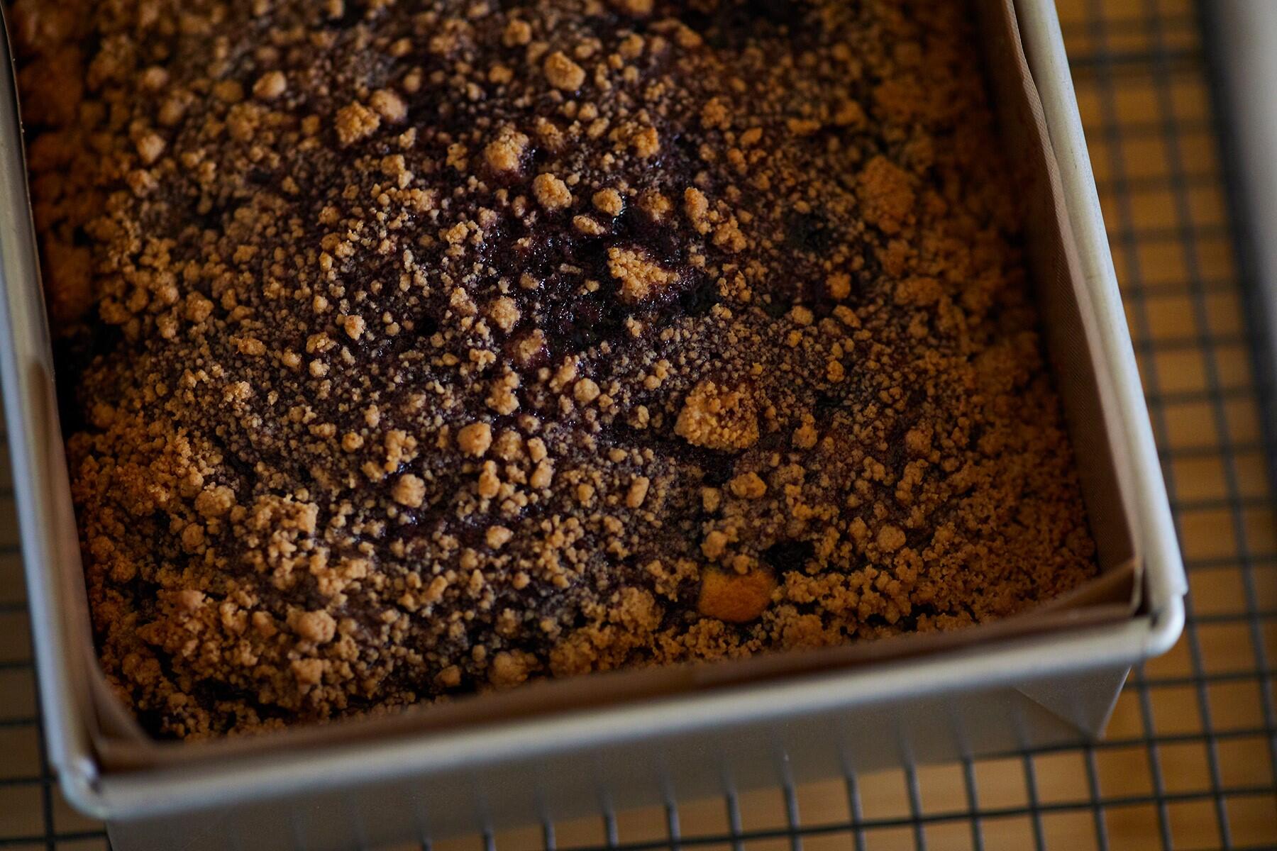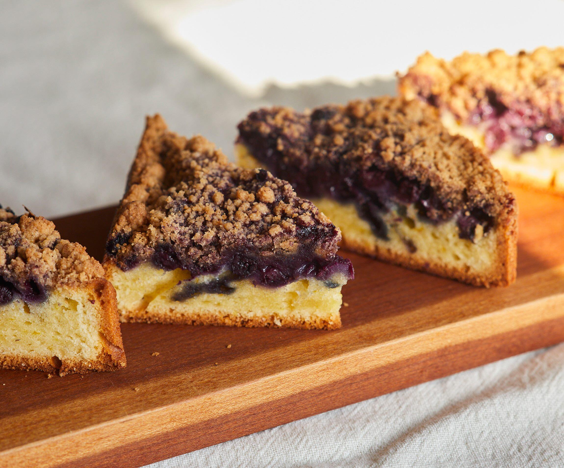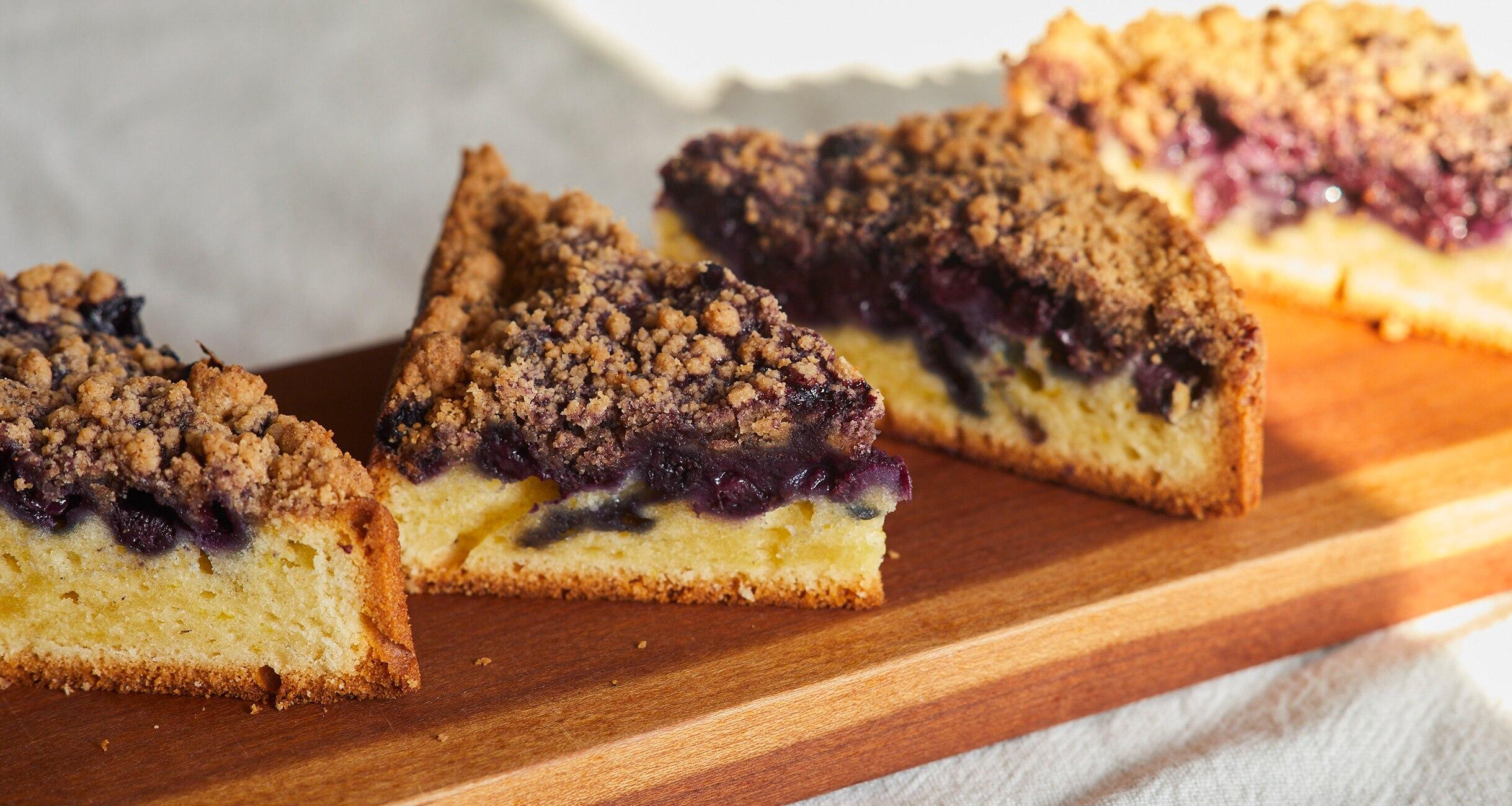 バターとシナモンが香る生地と甘酸っぱいブルーベリーが溶けあい、素朴ながら飽きのこないおいしさ。サクサクとしたクラムの食感が、焼きっぱなしのお菓子に豊かな表情を与えています。