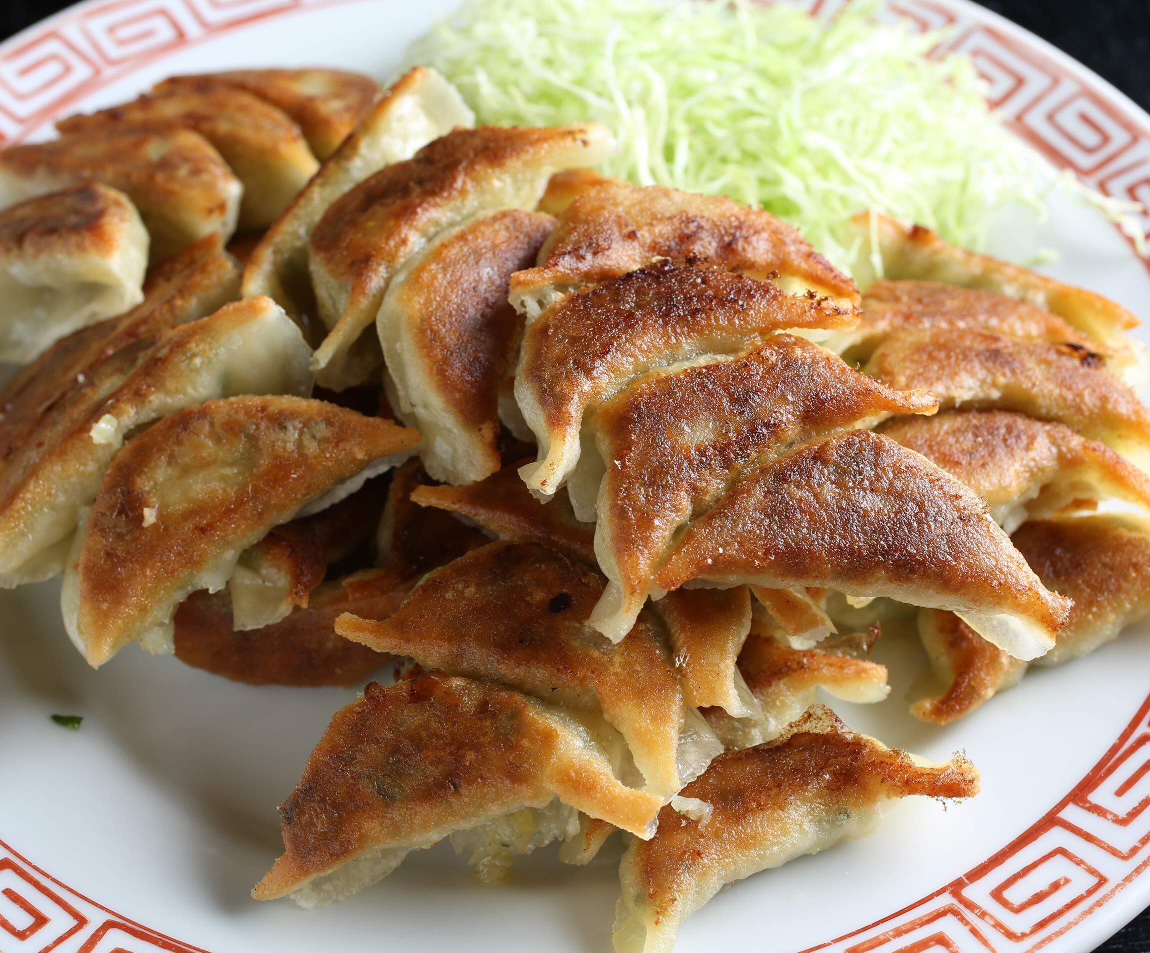 焼・水ともに、「一人前(十個)」。メニューに記されたその数には身構えるかもしれないが、福岡の餃子はひと口サイズが基本で、なかでもこの店ではおとなの親指大と小さめ。周囲を見渡せば皆、老若男女にかかわらずごくふつうに2~3人前を頼む様子に気づくはずだ。筆者(大食らい)は、焼・水、併せて毎回3~5人前平らげるが、少食の方でもおそらく10個は軽いはずなので、できれば2人前からスタートを。ボリュームがある分、目の前に運ばれたときの幸せ度数は高まるのだ。
