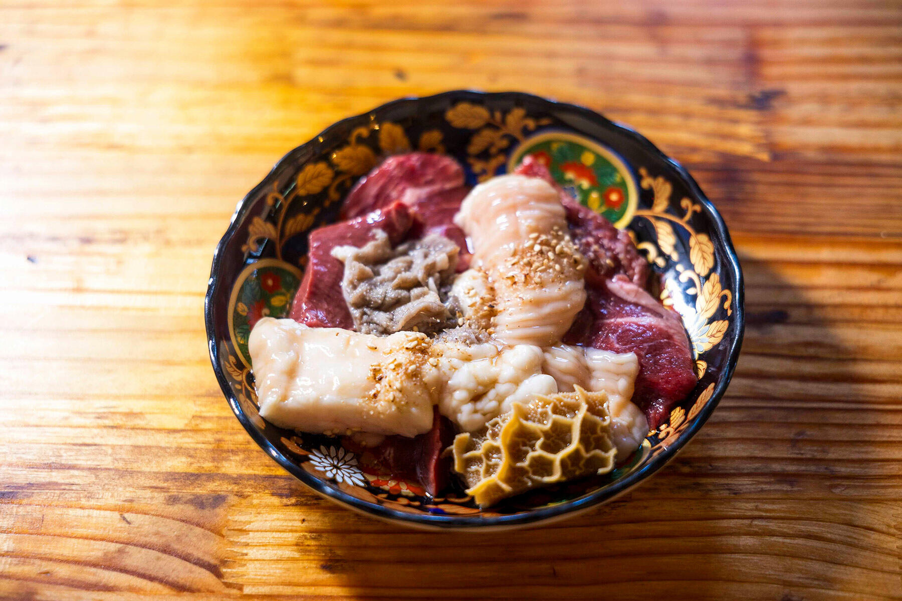 一方で「太陽」では赤身肉にも力を入れた。当時吉祥寺に「肉山」を立ち上げていた光山さんの「赤身肉はおもろいぞ」という言葉に「確かにおもろい!」と赤身肉とホルモン、両方を柱に立てることに。いまも「焼きもん」メニューは、赤身肉の盛り合わせ(2~4種)から始まる。