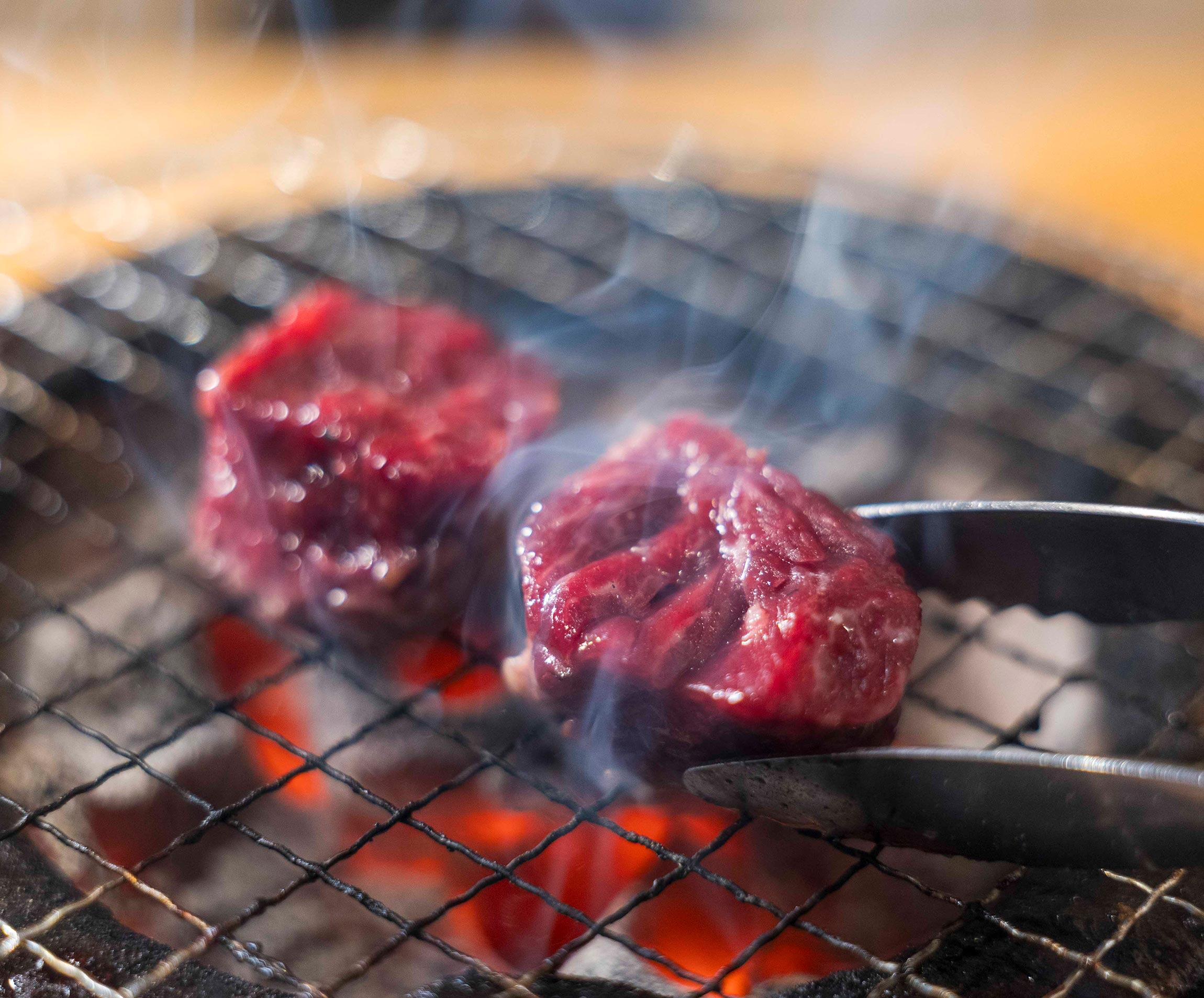みっちりした赤身の厚切りハラミを炭火でじっくり炙る。表面がざらりとした頃に喰めば繊維がぶつりと弾け、赤身のミネラルがあふれてくる。炭火から煙と香りが立ち上り、噛めば肉汁の泉湧く。そんな喜びが沼袋「塩ホルモン・赤身肉 太陽」の店内には充満している。