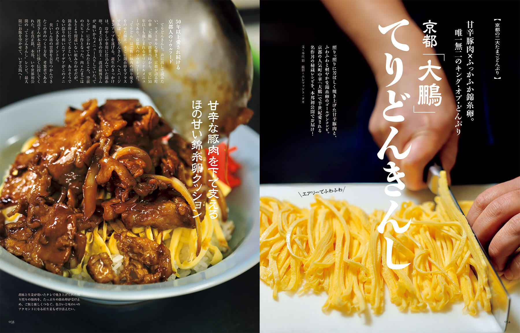 そして、京都の人気町中華「大鵬」で50年以上愛されている「てりどんきんし」と、京都が誇る人情町蕎麦「通しあげ そば鶴」で半世紀も不動の人気を誇る「玉子丼」のレシピを本邦初公開。さらに、並々ならぬ“たまご愛”を持つホテルニューオータニ(東京)の副総料理長、太田高広シェフに教えていただいた、渾身のたまごサンドウィッチレシピ7品や、スープ作家の有賀薫さんに、今お薦めのたまごスープ30レシピでつくっていただいた「たまごスープ日めくりカレンダー」は、毎日の朝食が確実にランクアップします。